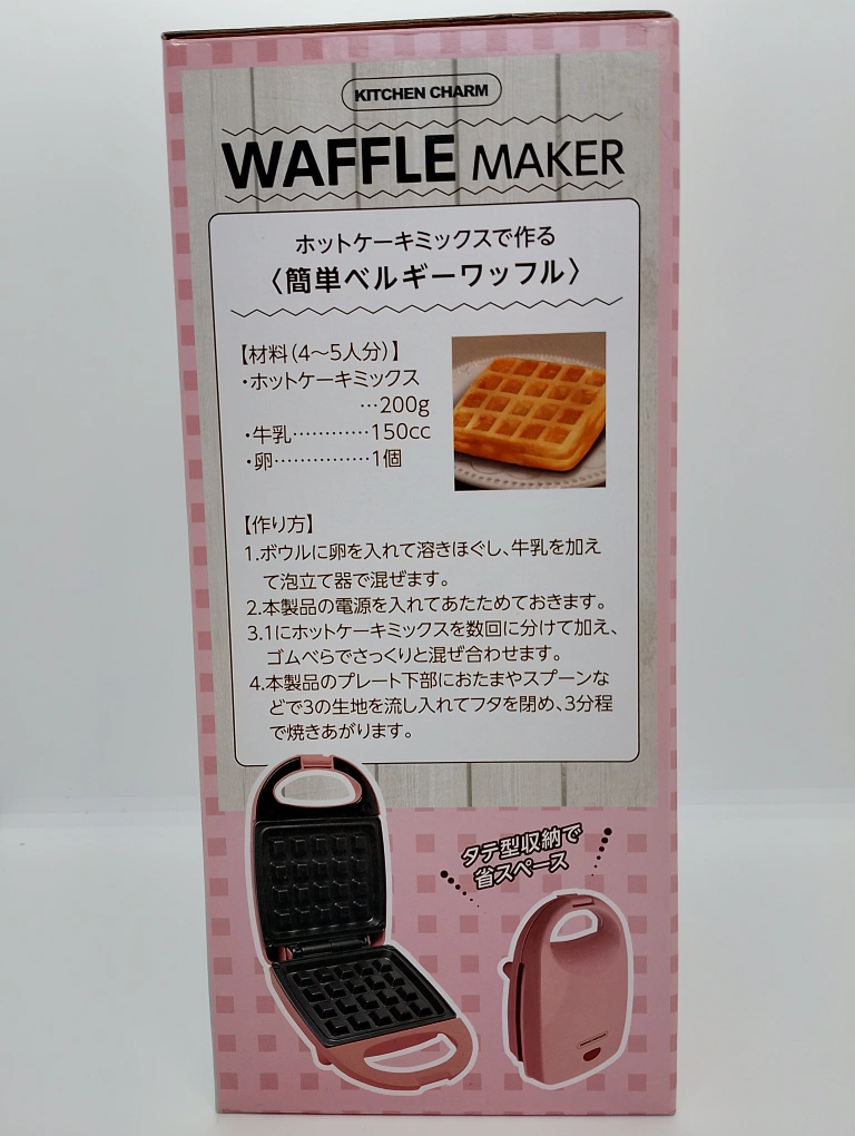 お家時間でワッフルを作ろう♪ 挟んで焼くだけ簡単! 朝食やデザートに デコレーションを楽しもう! お手入れ楽々!フッ素樹脂加工 タテ型収納で省スペース アレンジしやすいBigサイズ ワッフルサイズ 約13✕11cm 色はピンクです。 新品未使用!