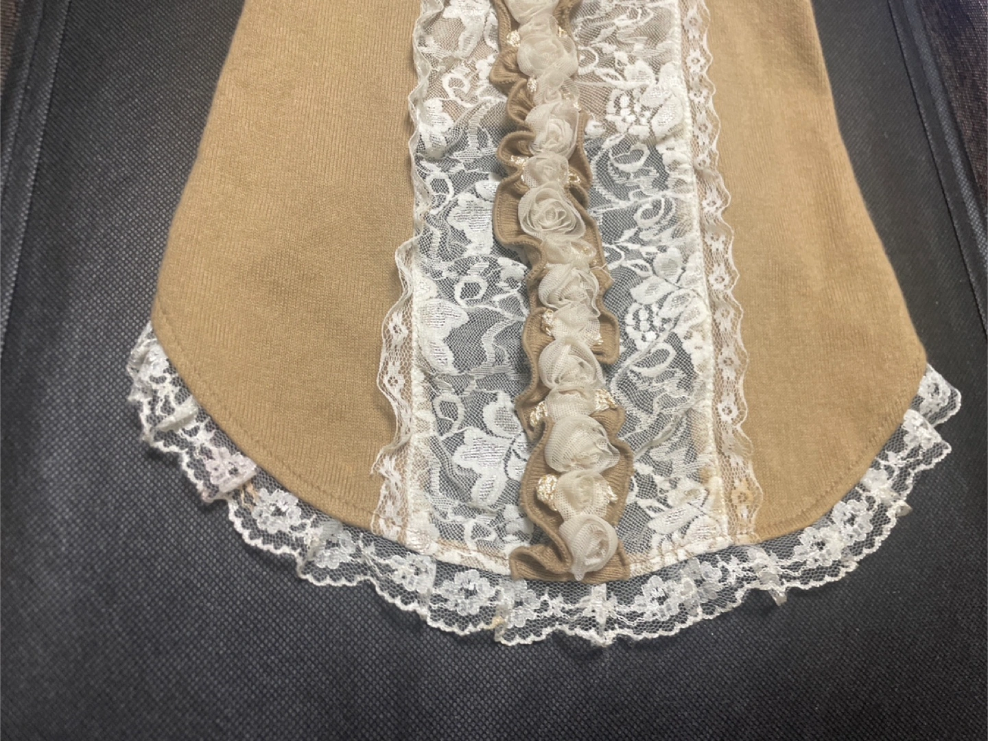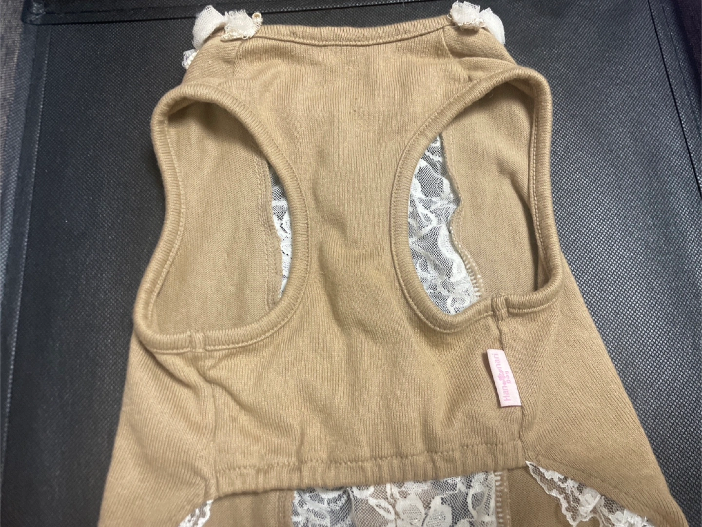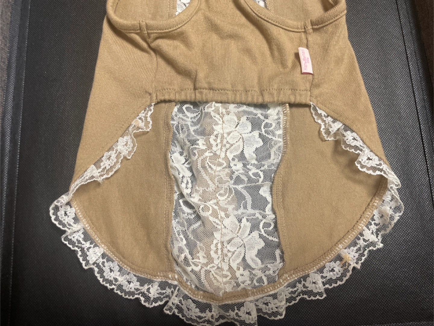 〜 ワンちゃん用 お洋服 レディース 〜 🐶 Summer・Autumn ・Spring 💛カラー:カフェオレ・ベージュ 💛サイズ:S 〜 平置き実寸 〜 💛縦ライン お洋服前面 襟から裾のレースまで約38㎝ 💛横ライン お洋服前面 中央部分約24㎝ ストレッチがききますので、多少は伸び ます。 💛素材・コットンとレース レースと花飾りのデザイン 💛南青山のドッグ専門店にて購入品。 多頭飼いのため、まとめて選びましたが 帰宅後に試着しましたら、うちの子には少しサイズが大きかったので出品します。 🍀クリーニング済 🍀自宅保管のため、神経質な方はご遠慮下さい。 🍀サイズにご不安がある方は、待ち合わせ当日に手に取ってご覧頂いてから、その場で最終的なご判断をして頂くことも可能です。 よろしくお願い致します。