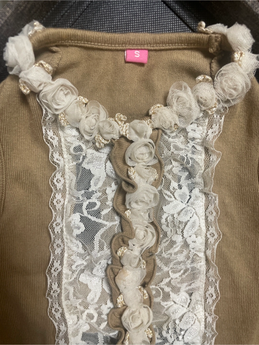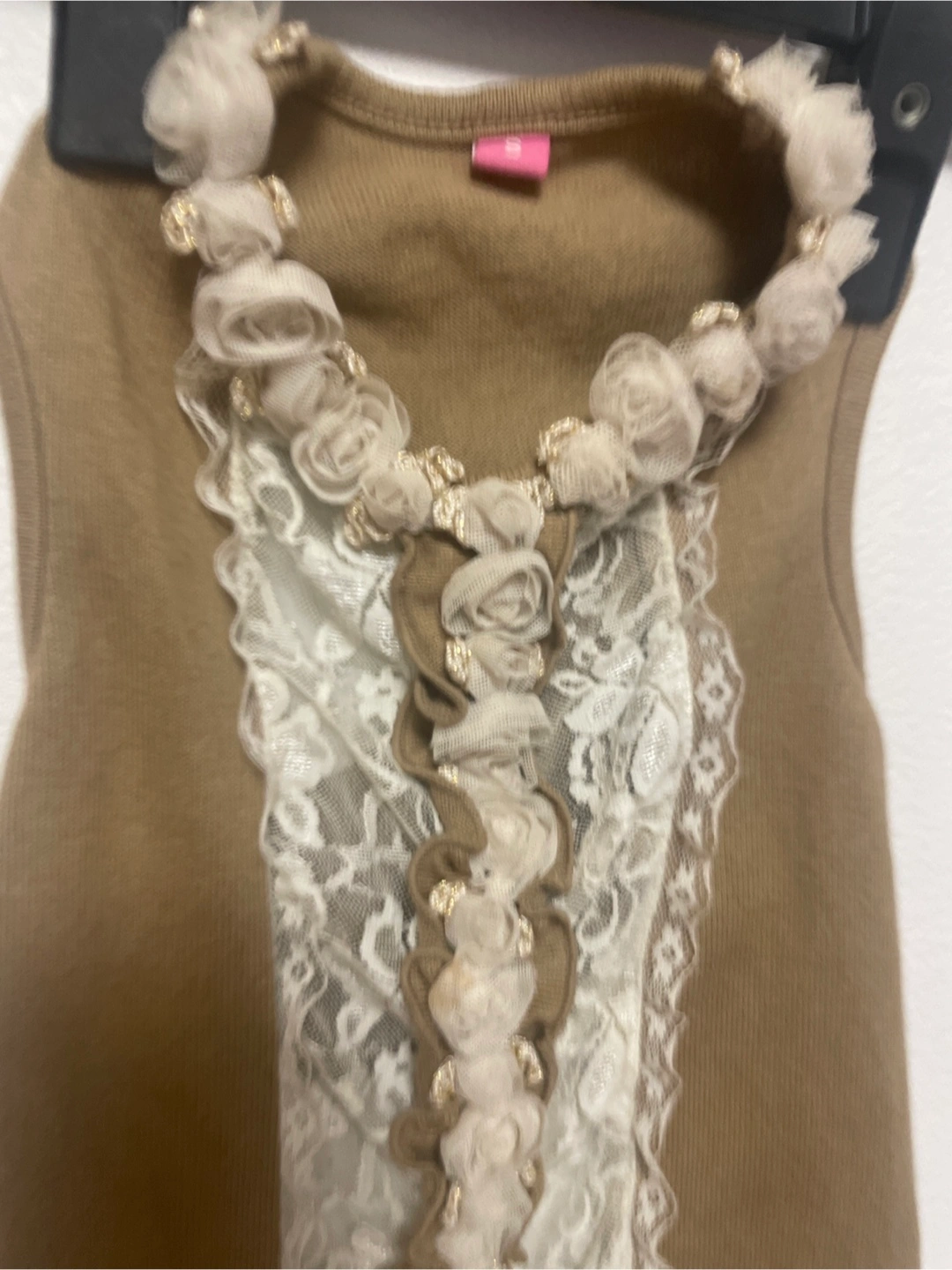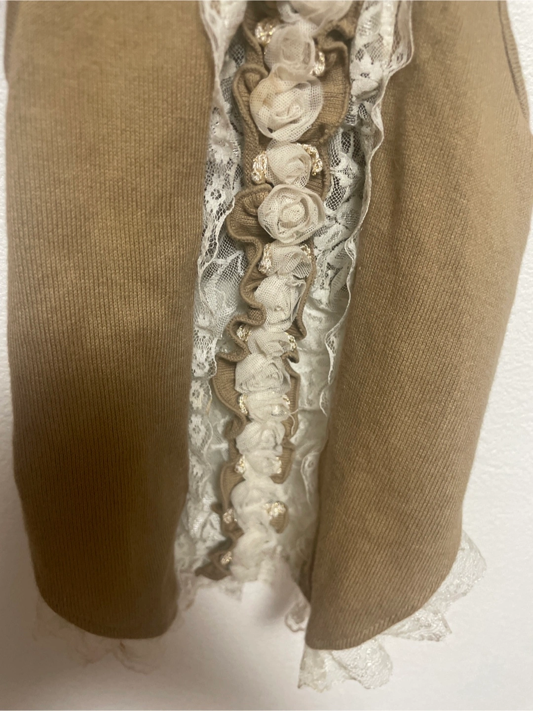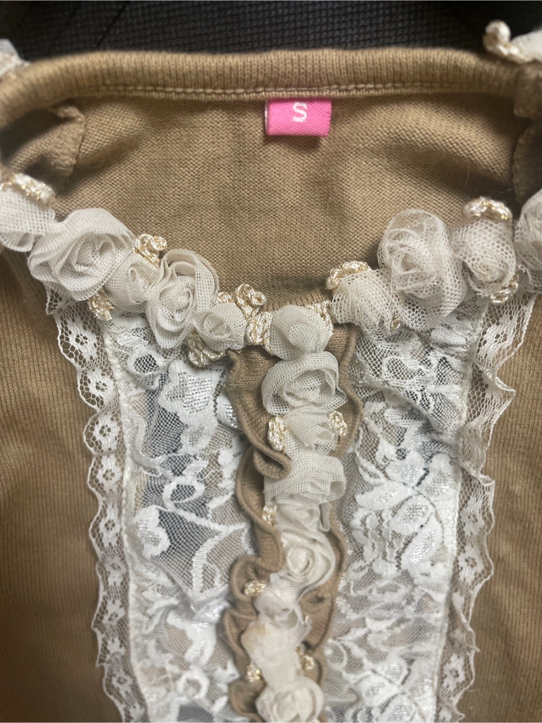 〜 ワンちゃん用 お洋服 レディース 〜 🐶 Summer・Autumn ・Spring 💛カラー:カフェオレ・ベージュ 💛サイズ:S 〜 平置き実寸 〜 💛縦ライン お洋服前面 襟から裾のレースまで約38㎝ 💛横ライン お洋服前面 中央部分約24㎝ ストレッチがききますので、多少は伸び ます。 💛素材・コットンとレース レースと花飾りのデザイン 💛南青山のドッグ専門店にて購入品。 多頭飼いのため、まとめて選びましたが 帰宅後に試着しましたら、うちの子には少しサイズが大きかったので出品します。 🍀クリーニング済 🍀自宅保管のため、神経質な方はご遠慮下さい。 🍀サイズにご不安がある方は、待ち合わせ当日に手に取ってご覧頂いてから、その場で最終的なご判断をして頂くことも可能です。 よろしくお願い致します。
