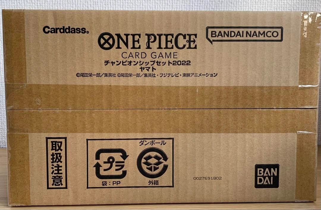 ワンピースカード チャンピオンシップセット2022 ヤマト 新品未使用品。 ラバー製プレイマット1枚 ストレージボックス1箱 特典のカードは付属しません。 ※購入があるまでは外箱から出さず保存してます! また、希望があれば外箱に貼って送ります! ご希望の方はお気軽にご連絡ください。