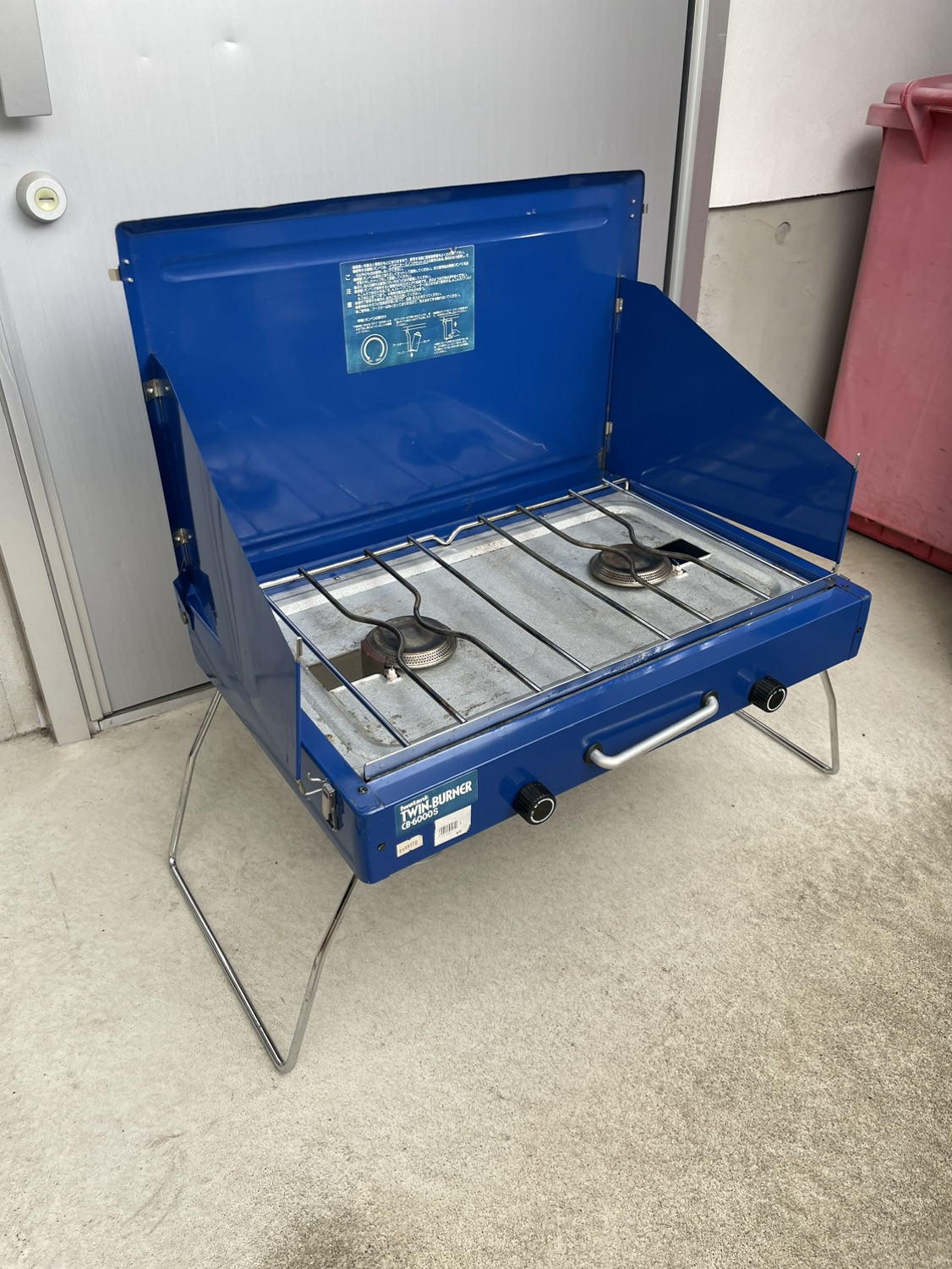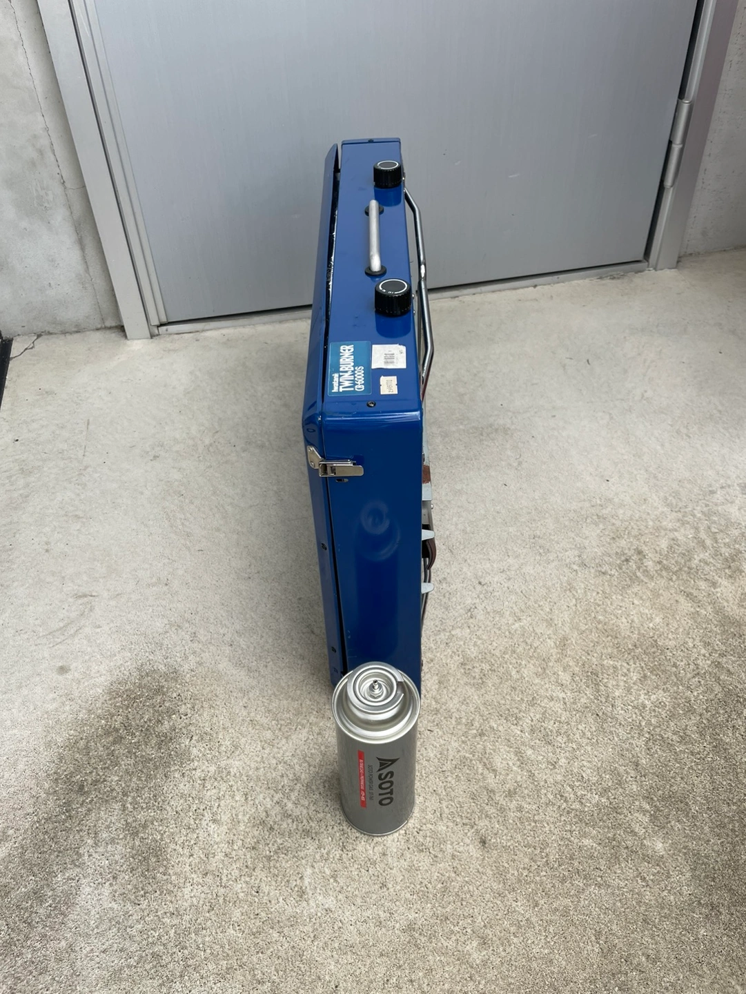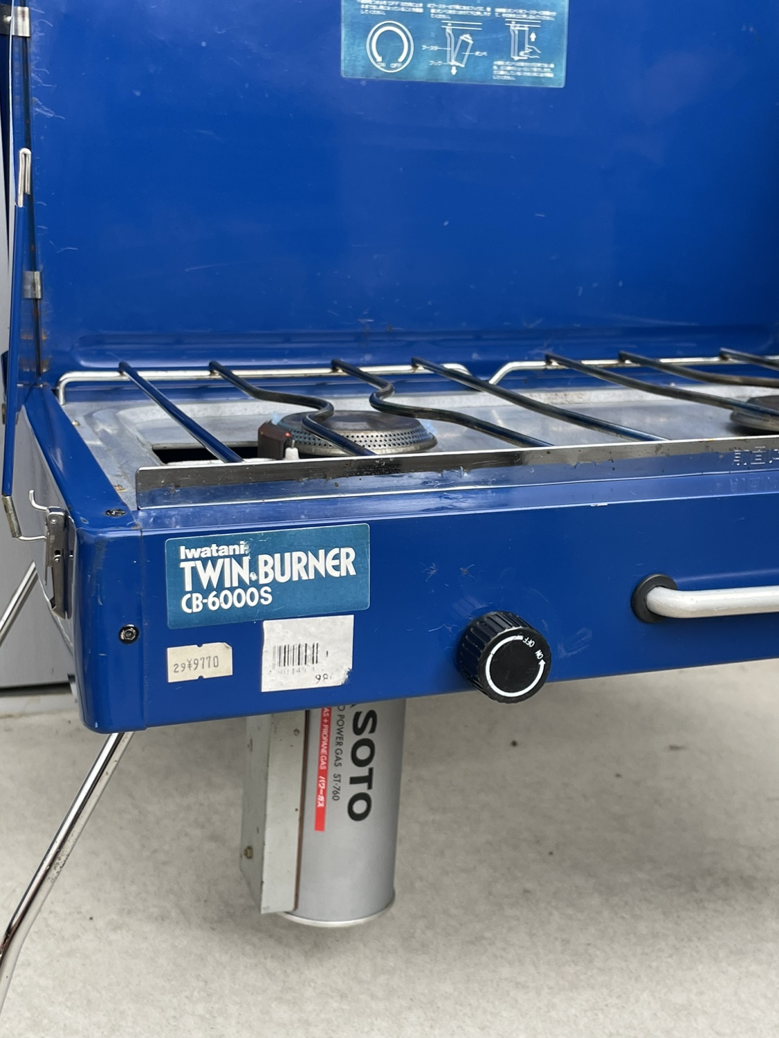 10年以上前に購入したイワタニのツインバーナーです。長年キャンプで使用していたので、サビや汚れなどあります。時々着火しづらい時がありますが、何度かカチカチやったり、ガスボンベを上に押し当てると火がつきます。古いものですのでメンテナンスできる方、その旨ご理解いただける方のみご購入お願いします。ヴィンテージ感がありキャンプ場で目立ちます。ウェットティッシュで簡単に清掃済み。 商品状態:傷や汚れあり カラー:ブルー サイズ:縦36㎝×横56㎝×厚さ11㎝ (たたんだ状態で) あくまでも中古品であるということをご了承の上、ご購入ください。