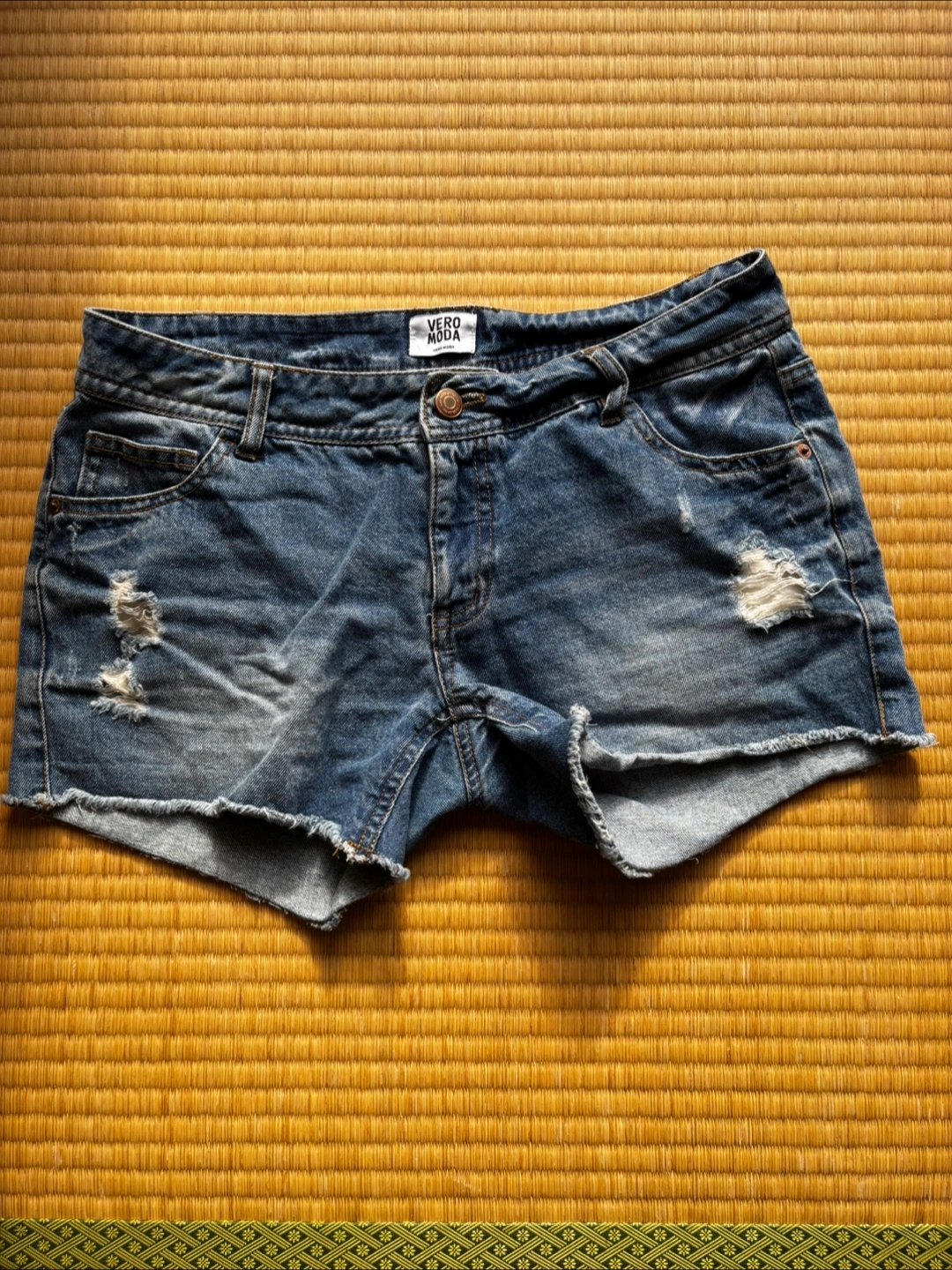 あたたかさ・ヴェロモーダ ・デニムショートパンツ ・色:ブルー ・ダメージ加工 EU size 38