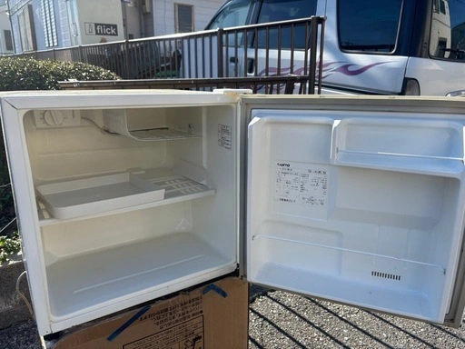 小型冷蔵庫の出品です。 屋外で撮影していますが、屋内使用品になります。 ・通電、冷却動作確認済み ・冷蔵室内、比較的きれいな状態です ・ドアポケット、棚あり ・シンプルな白色で一人暮らしやサブ冷蔵庫におすすめ 多少の使用感・小キズはありますが、使用に支障のある不具合はありません。 状態は写真をご確認ください。 【お渡し方法】 ・直接引き取り限定 仮設定で駅前にしています。 ・積み込みはお手伝い可能です ・現状渡しとなります 【注意事項】 ・中古品のため、神経質な方はご遠慮ください ・ノークレーム・ノーリターンでお願いします ・お問い合わせは早い方優先ですが、やり取りがスムーズな方を優先する場合があります ご希望の方はお気軽にご連絡ください。