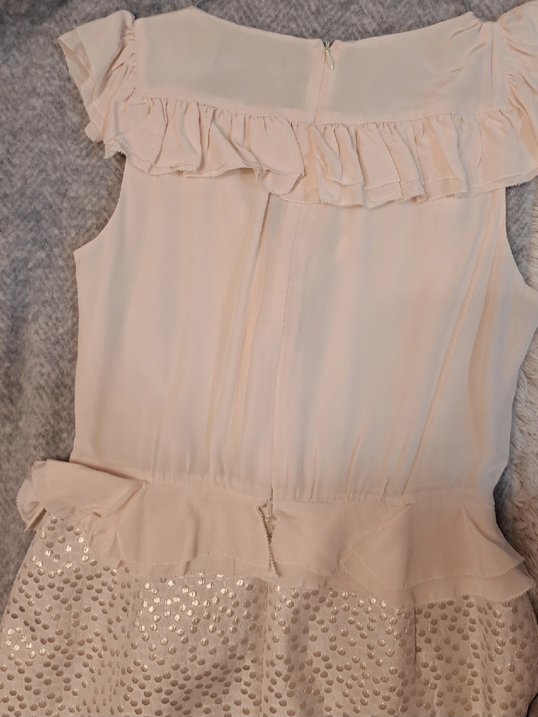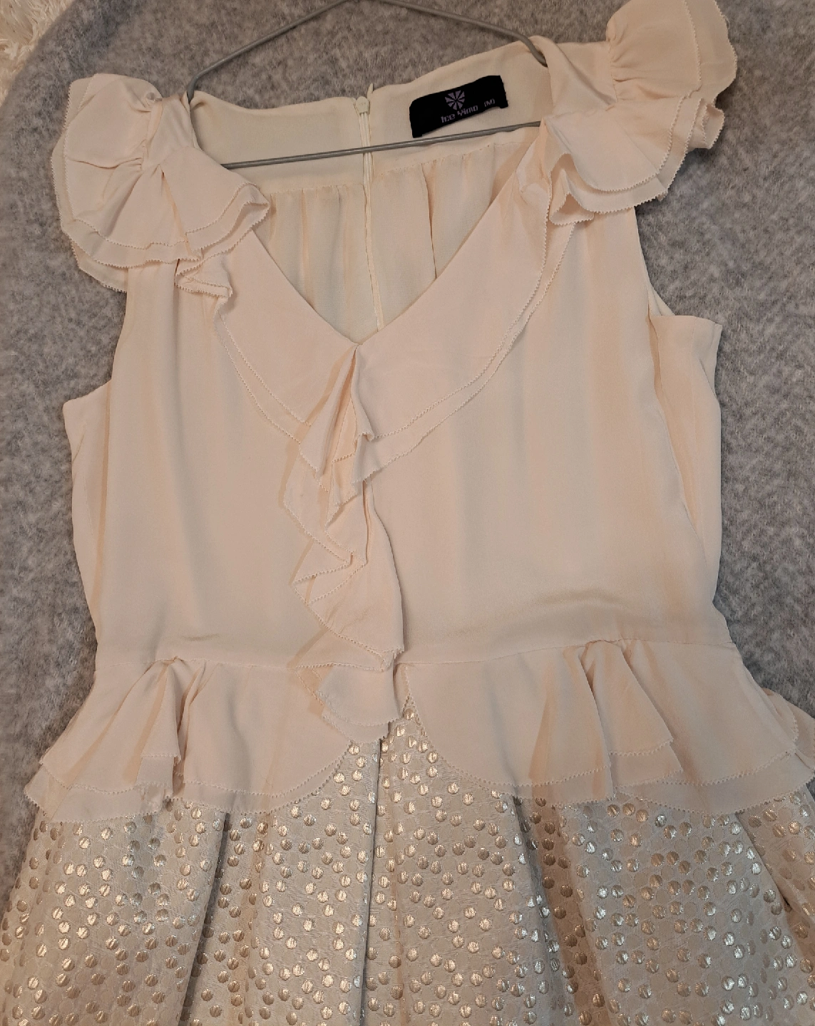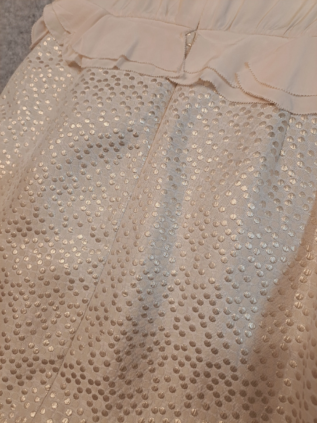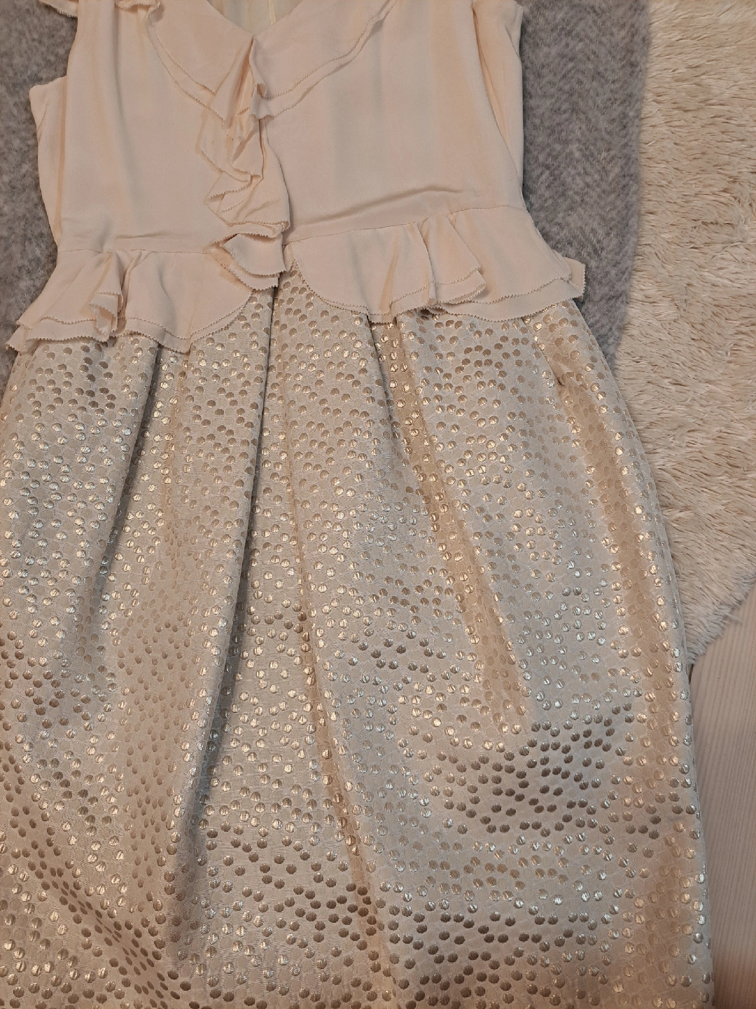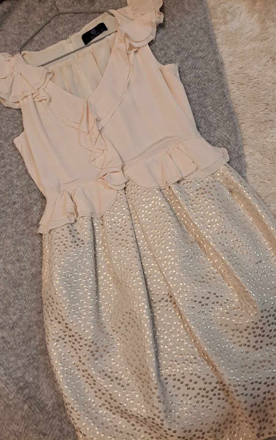一度のみしか着用していませんが、大切にしていたワンピースです。 綺麗な状態ですので大切に着て頂ける方がいらっしゃいましたら宜しくお願い申し上げます ・サイズ:M ・色:ベージュ ・フリルデザイン ・スカート部分にドット刺繍
