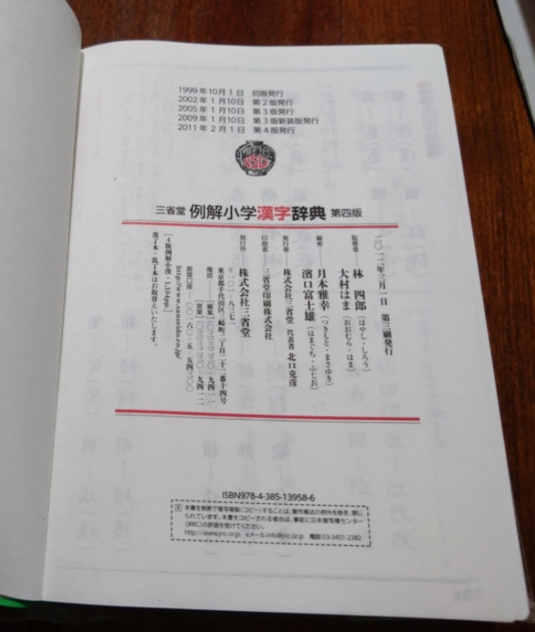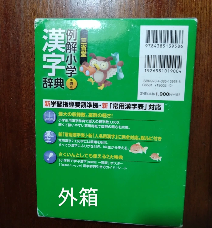・三省堂 例解小学漢字辞典 ・書き込みはおそらく無いとは思いますが、見落としがあるかもしれず、ご了承下さいませ。 ・外箱とビニールカバーに使用感ありますが、辞典本体は綺麗だと思われますので、ご入用の方がいらっしゃればお譲りします。