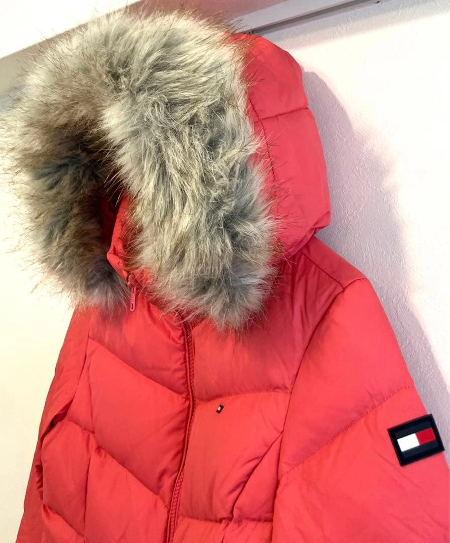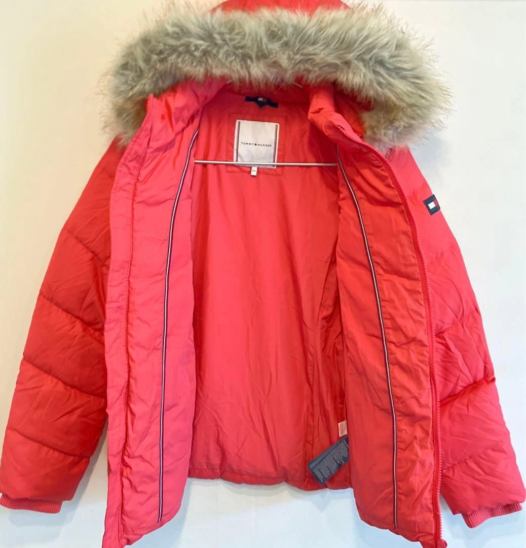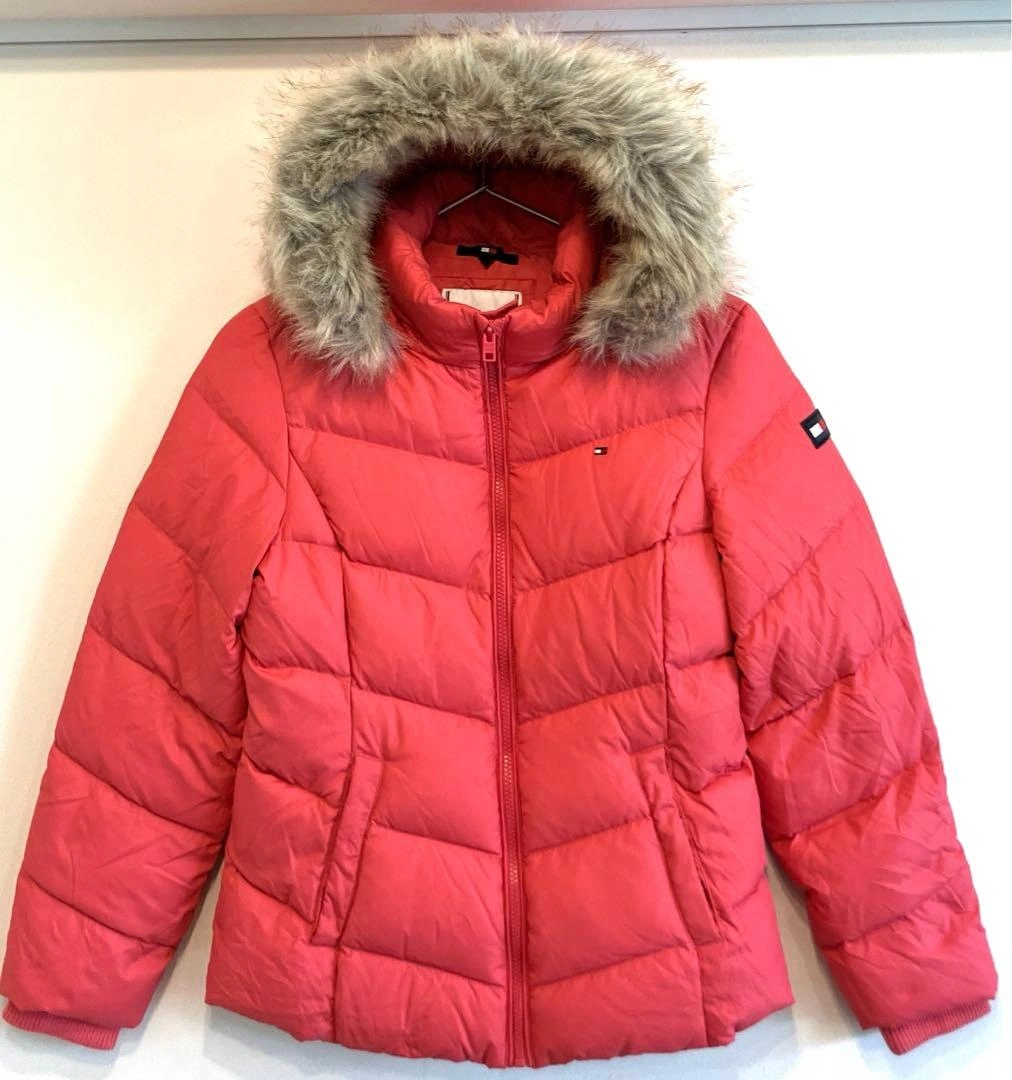 トミーフィルフィガー ダウン ジャケット 中古品 サイズ:164 発色の良いピンク(サーモンピンク)のダウンです。 厚手で暖かそうです。特に記載すべき事項はありませんが、中古品・自宅保管のご理解ご了承お願いいたします^ ^ 大人の方でも着用できると思います♪ ◯商品説明 ・カラー サーモンピンク ・取り外し可能なフード付き(ジッパー) ・正面ポケ ット×2 ・袖口リブ ◯サイズ 平置き 素人採寸 cm 肩幅38 身幅46 丈57 袖丈57 ◯素材 ダウン63% フェザー37% ご希望の方はお気軽にご連絡ください。 トミー トミーヒルフィガー アウター ジャンパー 上着 フード ファー ピンク系 TOMMY HILFIGER レディース キッズ 子供服 ダウンジャケット ピンク pink S s m M