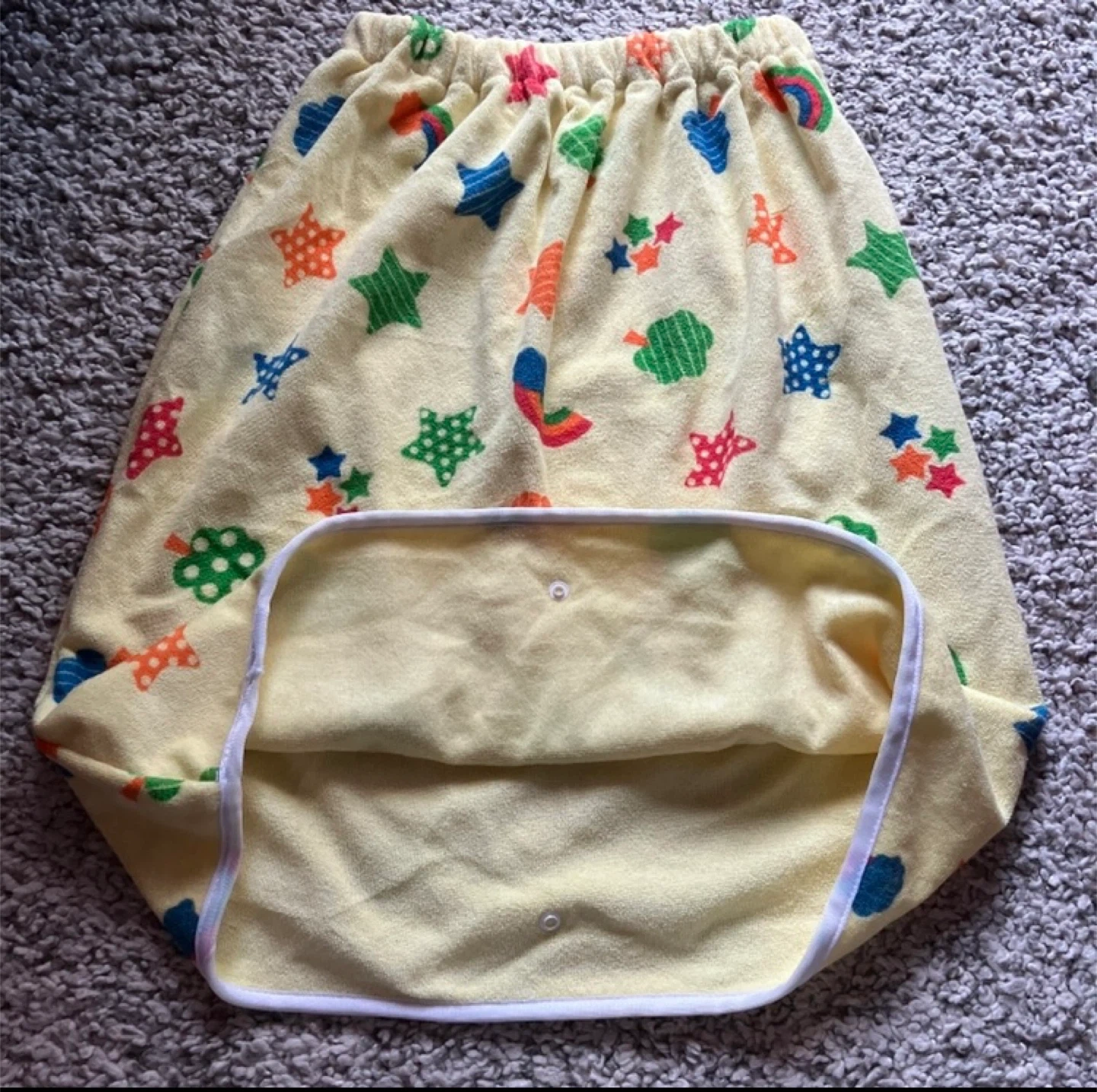 丸洗いOKおねしょの対策ケット ズボン 防水 子供用のおねしょ対策防水ケットです。 旅行に便利な収納袋付き。 スカートになっていて履きやすいです。 スカートの裾にスナップボタンが1つついていて、ズボンとして履くこともできます。 丈は約49cmです。 完全防水ではありませんが、今の季節防寒にもなると思います。 袋から出しましたが全く使用せず、自宅保管しておりました。 自宅保管をご理解のいただけるかた、お願いいたします。 性別···男女兼用