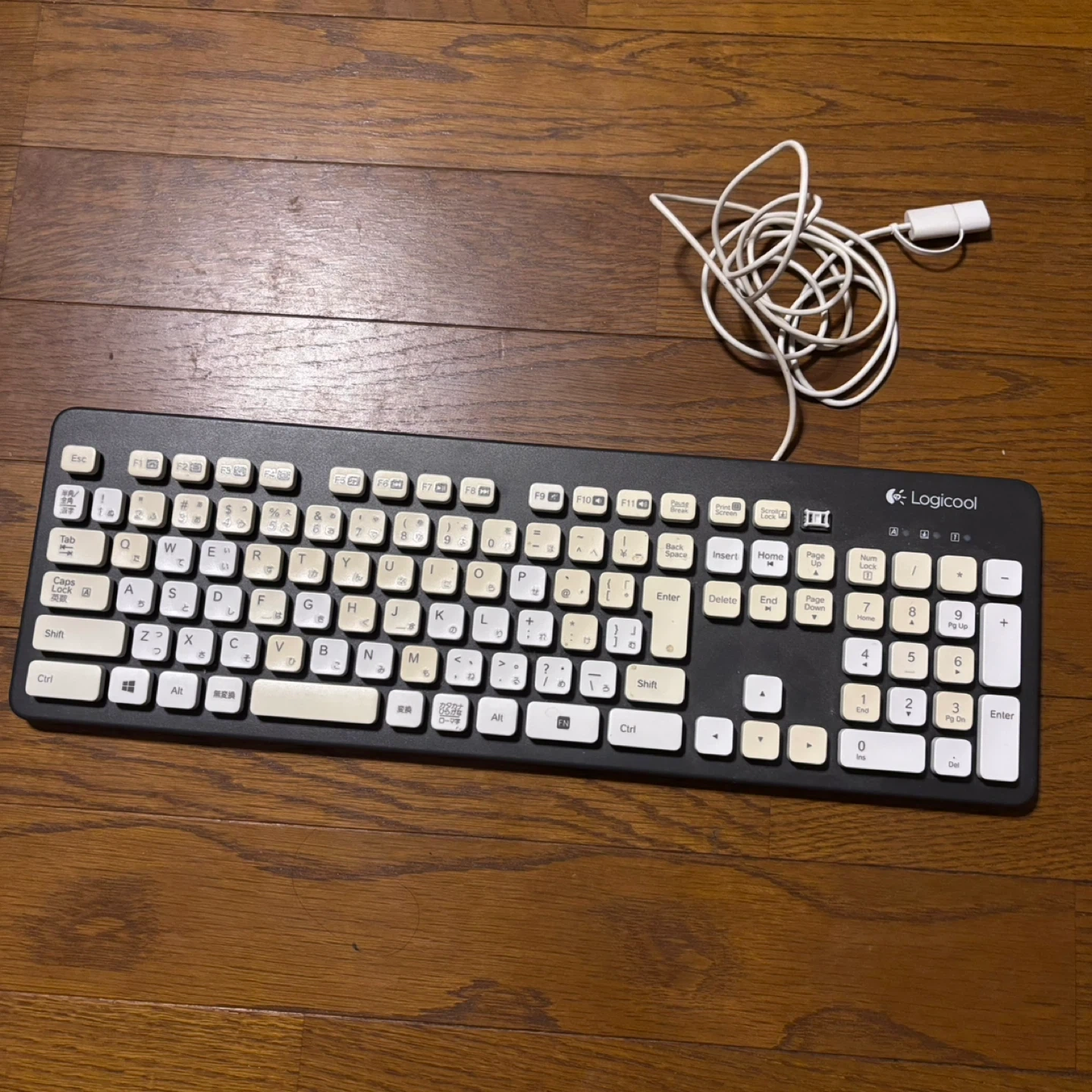 あたたかさロジクールの洗えるキーボードのK310(日本語配列)です。 簡易クリーニングを行いましたが、キーキャップの黄ばみなどは取れませんでした。 交換出来るタイプなのでお好みによってキーキャップを購入していただいての交換も可能です。 裏面に付属「クリーニング用ブラシ」はついていません。 一つだけキャップを紛失しております。 あくまでも中古品になります。 特徴は下記の通りです ・丸ごと水洗いできる有線キーボード ・キーに施したレーザー印字とUVコーティングで洗浄や衝撃に強い耐久性を発揮 ・機能的なキーレイアウトとモダンなデザイン採用 日本語配列キーボード(有線) メーカー:Logicool(ロジクール) 型式:K310 インターフェイス:USB ケーブル長:1800mm サイズ(幅×奥行×高さ):430×140×19mm 重量:640g ・中古品ですので使用感のある傷や汚れがあります。 ・商品の状態は写真でご確認ください。 ・本体以外のものは付属致しません。 ・簡易クリーニング済み。
