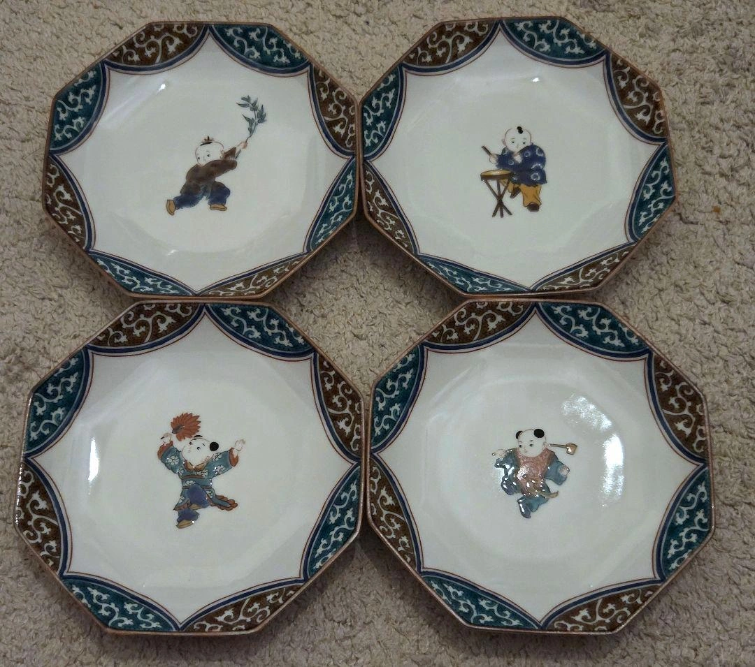 九谷焼 青郊 唐子 八角皿 4枚セット
