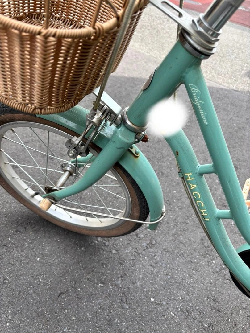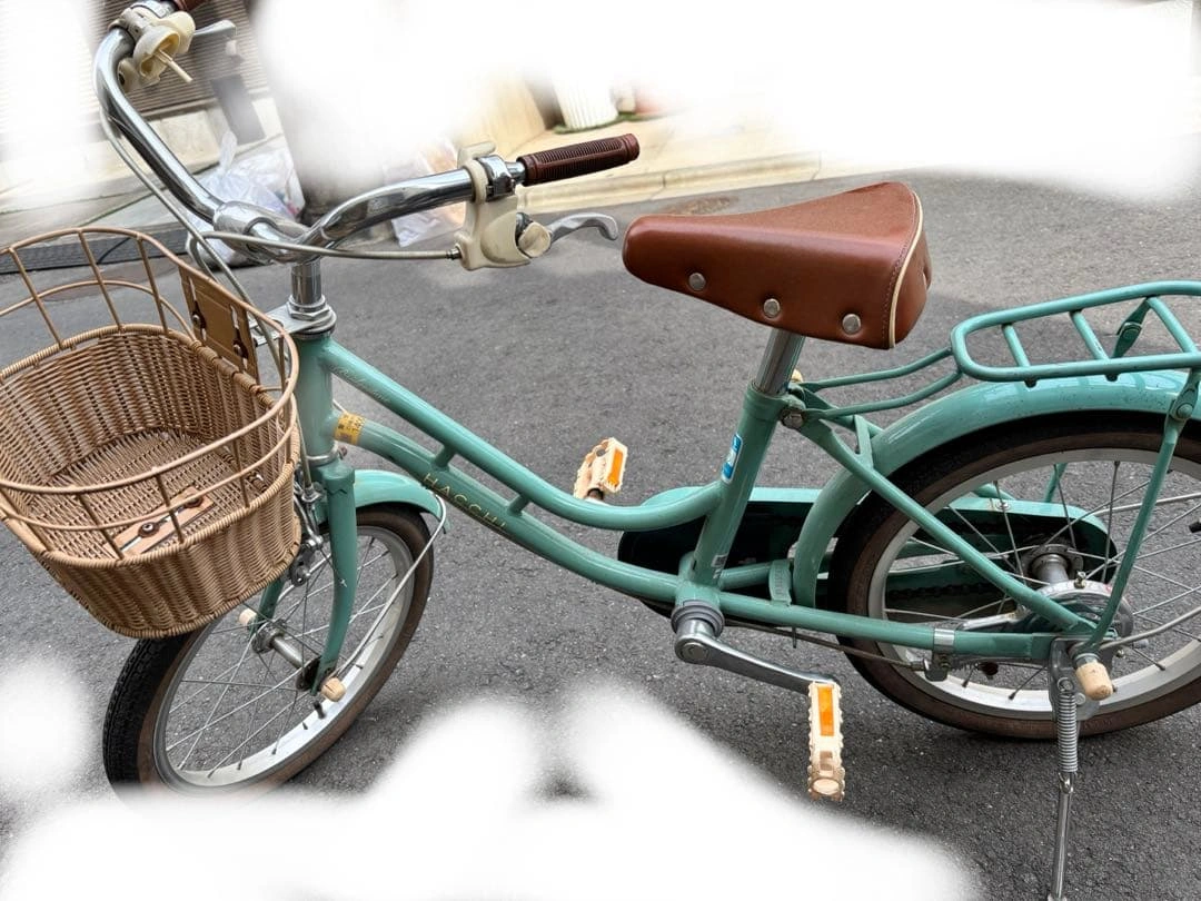 世田谷区内東急線二子玉川駅周辺にて引き渡し希望です。 ミントグリーンの子供用自転車、前カゴ付きで便利です。 - ブランド: HACCHI - 色: ミントグリーン - バスケット: 前カゴ付き - サドル: ブラウン - サイズ: 子供用 7年前に購入したものです。 カバーをかけて保管していました。 キズ、サビ、かけなどございます。写真をご確認ください。ベルがなくなっています。ブレーキなどご自身で点検の上ご使用ください。タイヤはパンクしていません。 斜めで止めるスタンドをつけています。 防犯登録は購入していただいたあとに抹消しに行く予定です。 受け渡しは二子玉川駅ロータリーか、二子玉川公園周辺でのお渡しが希望です。