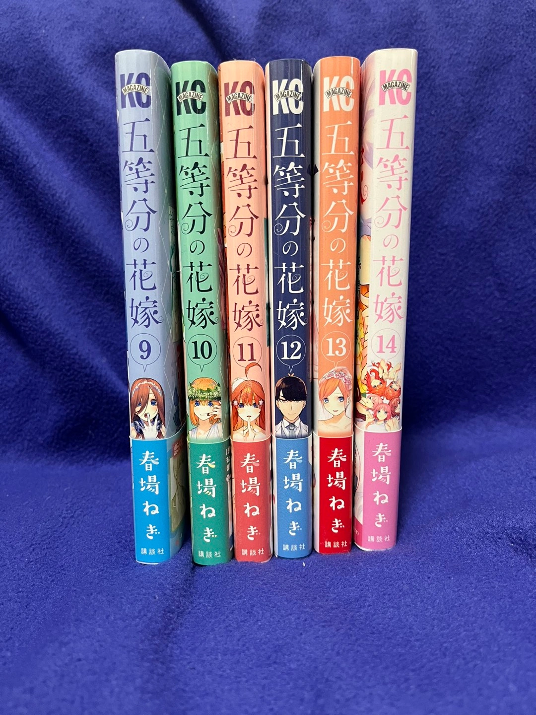 「五等分の花嫁 9-14」 春場 ねぎ 定価: ¥ 450 2回ほど読んだので綺麗な状態です。 9巻の帯の部分が少し切れています。 写真にてご確認ください。(本自体は綺麗です。) お気になさらない方、ご了承の上ご購入ください。 江戸川橋駅 もしくはファミリーマート新小川町店前での受け渡し #春場ねぎ #春場_ねぎ #本 #コミック/コミック