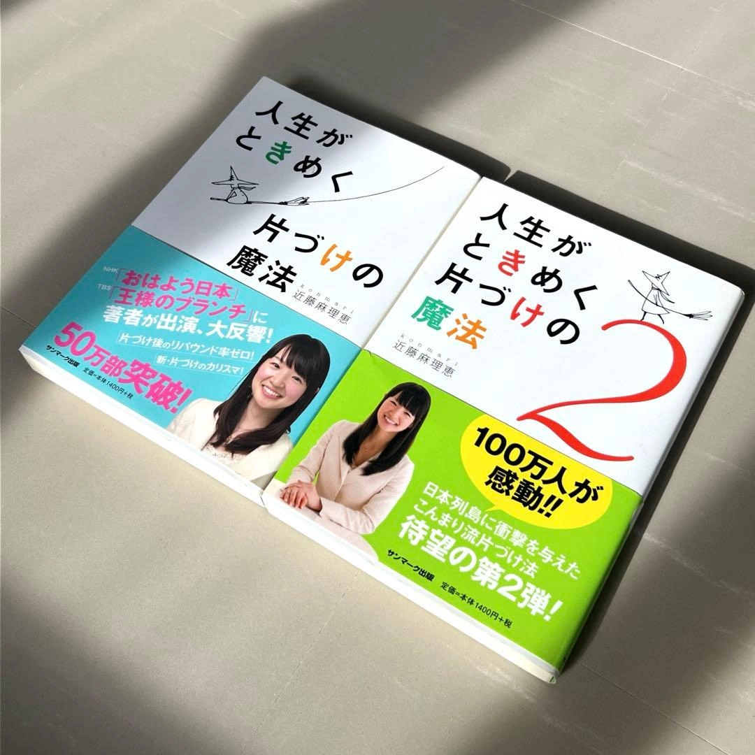 近藤麻理恵さんによる、片づけの魔法シリーズ第1巻と第2巻のセットです。 - タイトル: 人生がときめく片づけの魔法 1 - タイトル: 人生がときめく片づけの魔法 2 - 著者: 近藤麻理恵 - 言語: 日本語 - 特徴: 50万部突破 - 特徴: 100万人が感動! - シリーズ: 人生がときめく片づけの魔法 ▫︎状態 ・自宅保管 ・カバー、帯あり ・書き込み、マーカーなし ・日焼け若干あり ・ペット、タバコなし 定価 各¥1,400- 古本としてご理解お願いいたします。 ⭐︎本 、他にも出品しています。まとめ売りOKです。 ご希望の方はお気軽にご連絡ください。
