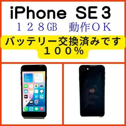 機種変のため出品します。 128GBのiPhone SE 3、バッテリーは100%交換済み、動作良好です。 ●詳細 ・外観 : 側面にごくわずかなスレ傷、カメラフレームに塗装剥げがあります。使用に支障があるような傷やダメージではないと思います。ガラスコーティング加工済みです。 ・機能 : 不具合なし(動作確認OK) ・IMEI(製造番号)=354532198527834 ・バッテリー100%(11/9に交換。社外品ですが問題なく使用できます) ・SIMフリー ・交換歴(バッテリー)・水没歴なし ・残債・ネットワーク利用制限なし ・アクティベーションロック解除済み ・初期化済み 非喫煙、ペットは飼っていません。 出来る限り現状を見て記載していますが、写真や説明以外に見落としがあるかもしれません。 その他、気になる点はお気軽にご質問ください。 ご覧いただきありがとうございます。 シリーズ...iPhone 機種名...iPhone SE (第3世代) スマートフォン カラー...ミッドナイト 容量...128GB 機能不良...なし