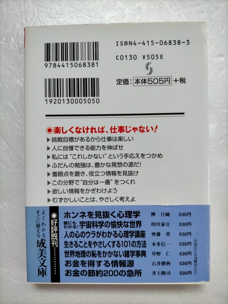 仕事の技をみがく発想法 ビジネスの“知恵”は実務の中にあり! 泉田豊彦 定価: 505 円+税 成美堂出版 成美文庫 自宅保管のため細かい傷や折れ・汚れ等がございます。