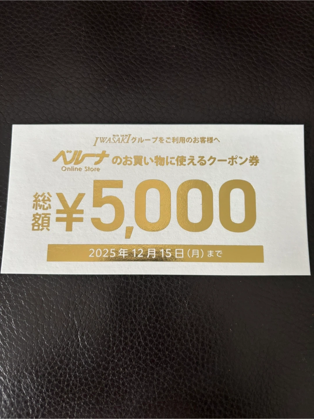 ベルーナのクーポン券です。 こちらは他商品ご購入くださった方にお譲りします。申し訳ございませんが、無料商品のみのお問い合わせはご遠慮ください。また、無料商品は1点購入につき1点とさせていただきます。 ・総額:5,000円 ・有効期限:2025年12月15日(月)まで
