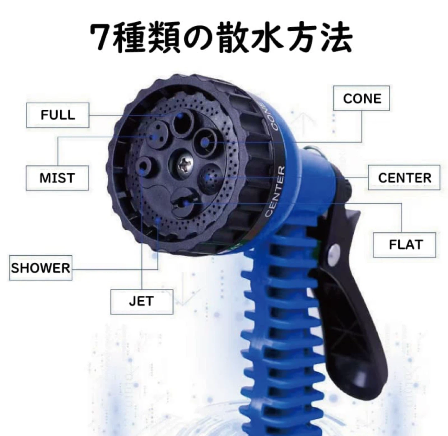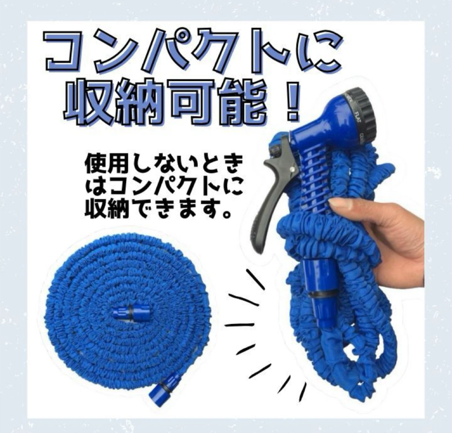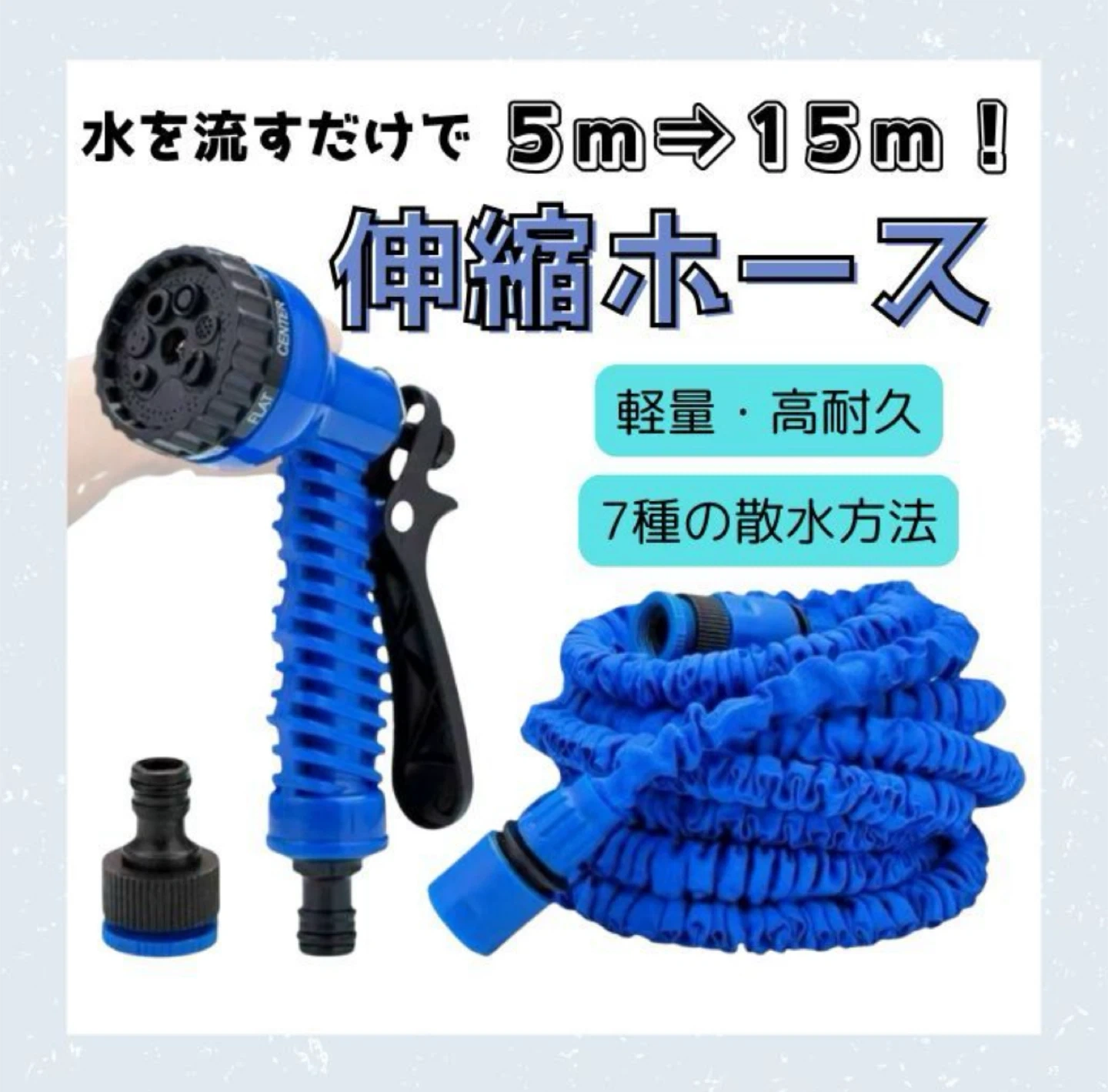 あたたかさ水を通すと最長15mまで伸びる便利な伸縮ホースです! 収納時は約5mでコンパクト、使用時は水圧で一気に伸びて広範囲に散水可能。 【おすすめポイント】 ・7種類の散水パターン切替が可能なので、とても便利です!(シャワー/霧/ジェットなど) ・軽量なので女性やお子様でもラクラク持ち運びできます。 ・使用後は自動で元の長さに戻り、コンパクトに収納可能。場所を取りません。 ・ガーデニング/洗車/掃除/子供プール/水遊びなど多用途で活躍! 【サイズ・仕様】 ・長さ:約15m(使用時)/約5m(収納時) ・カラー:ブルー ・ノズル:7パターン切替式 ・付属:ホース本体、ノズル、接続金具 引き渡し場所 成城郵便局まで取りに来ていただける方を希望します。 成城郵便局:東京都世田谷区成城8丁目30−25