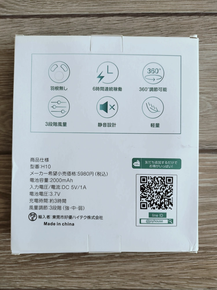 必需品のポータブルファン! いただきものの未使用品です。 商品 Neckband Fan 羽根なし首かけ扇風機 Joy house ============= ◆商品詳細◆ 【定 価】5,980円 【電池容量】2,000mAh 【稼働時間】最大約6時間 【充電時間】約3時間 【風量調整】強・中・弱 【特 徴】360°調節可能、静音設計、首掛け、軽量 =============