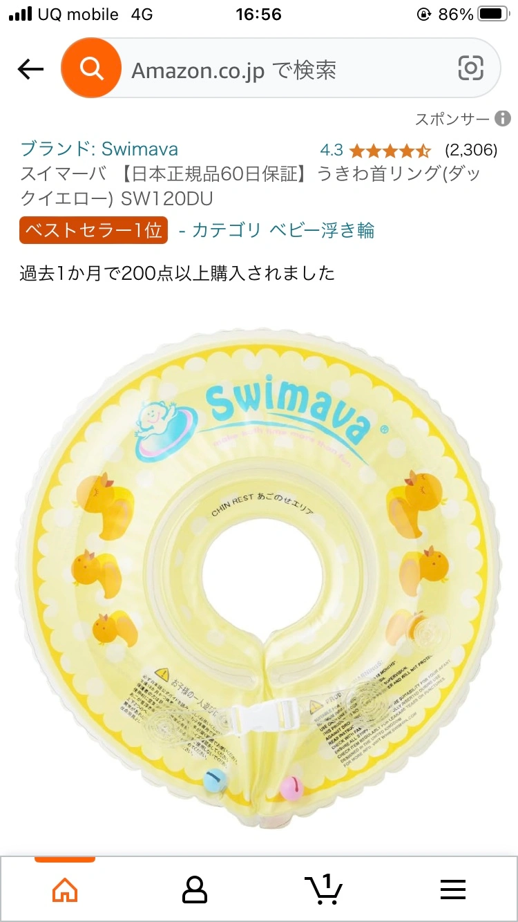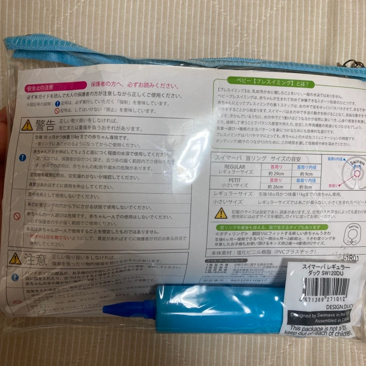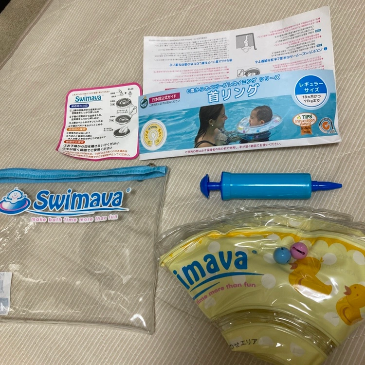 中古品ですが、我が家では海へもプールへも行かずこのまま1度も使用しなさそうなので出品します。 定価¥2,530(Amazon調べ) 【安全性】 Swimavaの赤ちゃん用浮き輪は、特に赤ちゃんの安全を考慮して設計されています。首を支えるデザインで、安心して水遊びが楽しめます。 【便利な付属品】 この商品には、取扱説明書、ポンプ、収納袋が付属しており、使用後の保管も簡単です。持ち運びにも便利です。