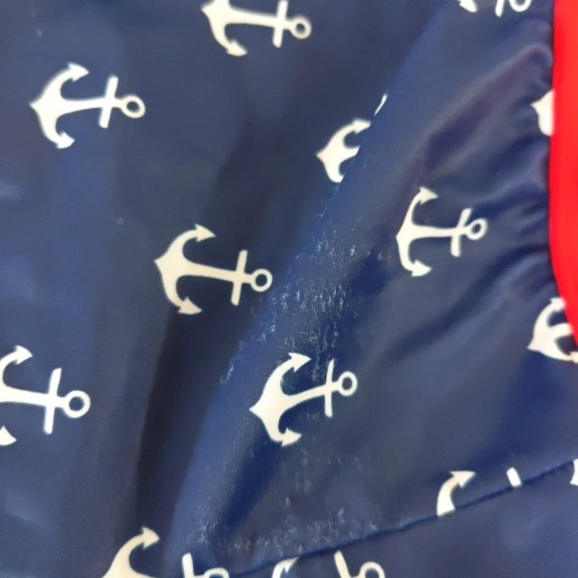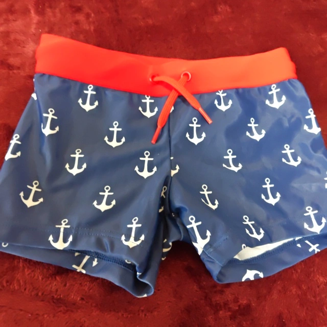 水着です ・色:ネイビー、赤 ・アンカー柄 ・サイズ:100cm(サイズのわりには小さめ) ・新品ですが、保管が悪かったので布が傷があります。 こちらをふまえて頂ける方でお願いします。 良かったら貰ってください。