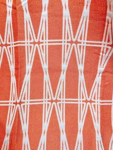 本物の70年代日本製デッドストックの柄布です。 カーテン程度の厚みで丈夫、プリントではなく織り、(写真に裏表両柄載せました)70年代の素敵な模様です。 クッションやランチョンマット、ショッピングバッグなどに。2000年代初頭に買い、未使用で保管していました。 サイズは大体100cm×115 cm(素人採寸ご了承ください) 他の色柄と同時購入の場合はお気持ちお値引きいたします。 ご希望の方はお気軽にご連絡ください。