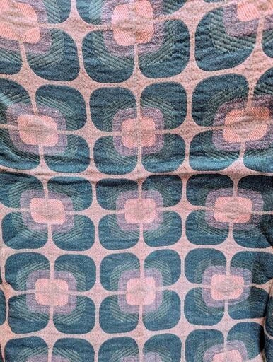 本物の70年代日本製デッドストックの柄布です。 カーテン程度の厚みで丈夫、プリントではなく織り、(写真に裏表両柄載せました)70年代の素敵な模様です。 クッションやランチョンマット、ショッピングバッグなどに。 2000年代初頭に買い、未使用で保管していました。 サイズは大体100cm×120cm(素人採寸ご了承ください) 他の色柄と同時購入の場合はお気持ちお値引きいたします。 ご希望の方はお気軽にご連絡ください。