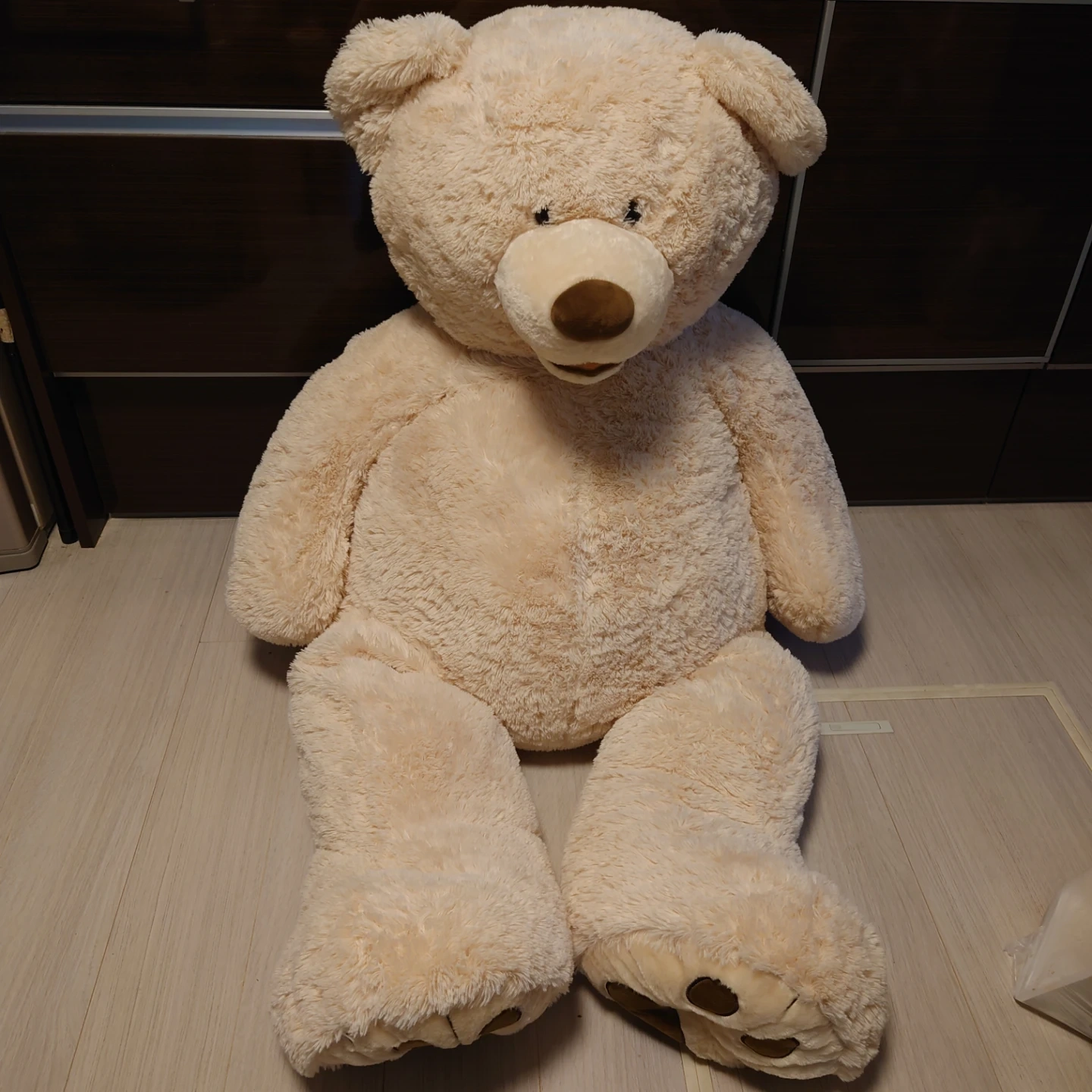 今年に購入したばかりです✨️ うちには子供もペットもおらず、ホコリが被らないようにタオルケットをかけて置いておいただけです🙆 煙草の臭い移りもありません🚭️ 商品名:53 IN PLUSH TEDDY BEAR 特大サイズ メーカー:HUGFUN 型番:53インチ カラー:ベージュ(お写真の通りアイボリーみがあるお色です) サイズ横80㎝高さ145㎝奥行35㎝ ※寝かせたサイズです。 テディーベア 大型ぬいぐるみ 53 IN PLUSH TEDDY BEAR 特大サイズ HUGFUN 特大サイズ53インチ。 とても可愛いです。 柔らかい素材で作られた大きなぬいぐるみで、とても可愛く存在感抜群です。 - サイズ: 大きい - 素材: ぬいぐるみ - 特徴: 柔らかい ご覧いただきありがとうございます。 お取引場所は ①私の自宅前(渋谷区幡ヶ谷2-16-15) ②幡ヶ谷ひだまり公園(渋谷区幡ヶ谷2-42-6) ③ライフ幡ヶ谷店(渋谷区幡ヶ谷2-17-1)前のいずれかでお願い致します🙇