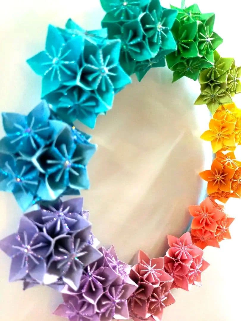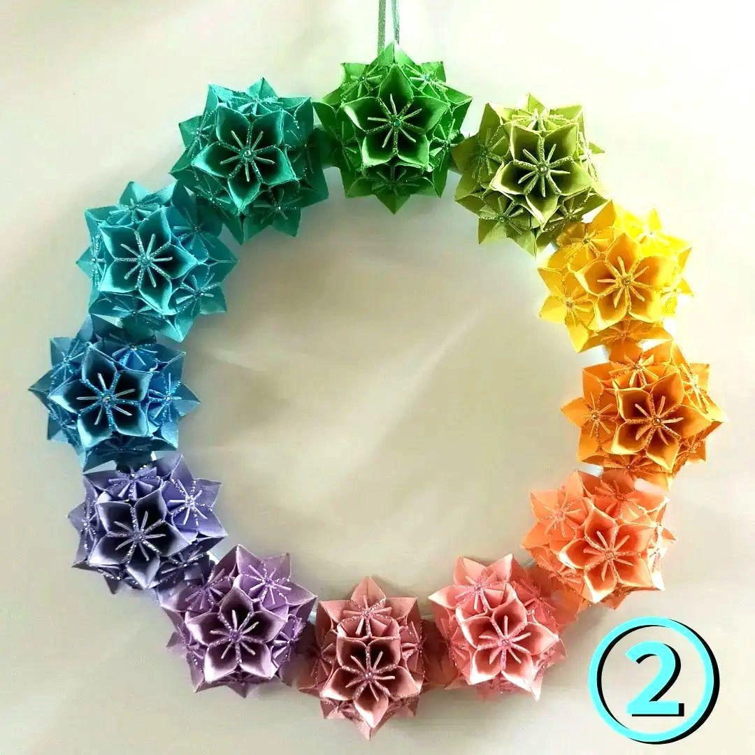 再·再·再販売⑩レインボーフラワーリース 折り紙 リース