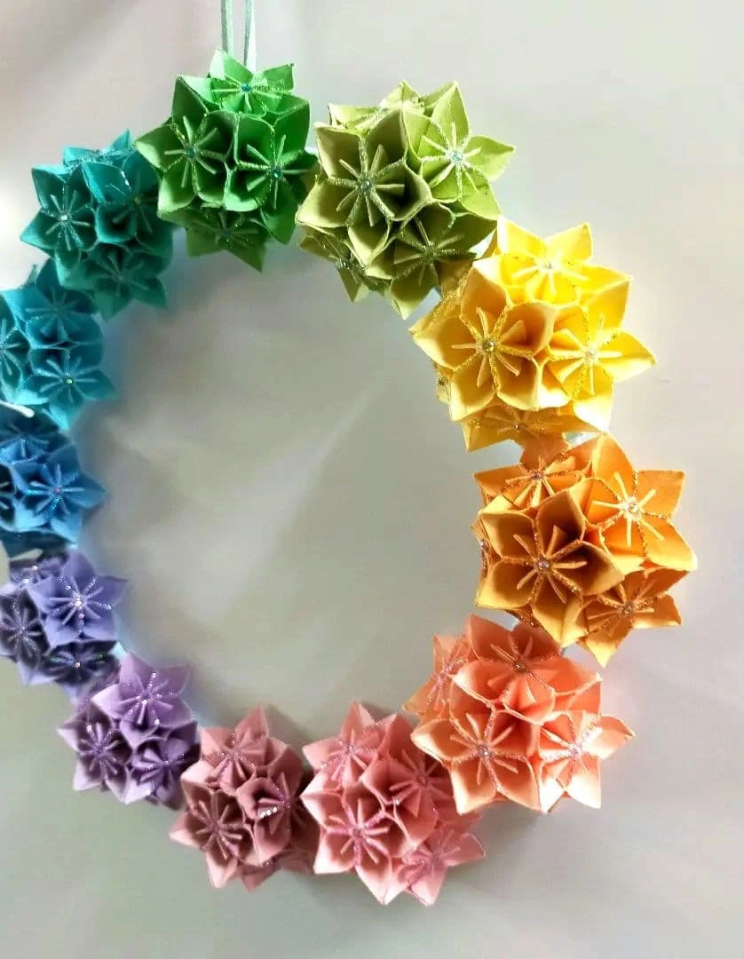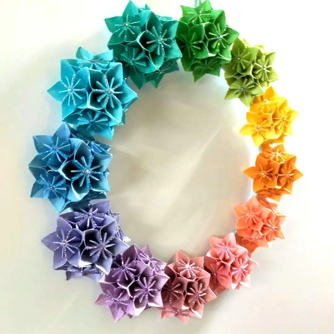 再·再·再販売⑪レインボーフラワーリー 折り紙 リース ス