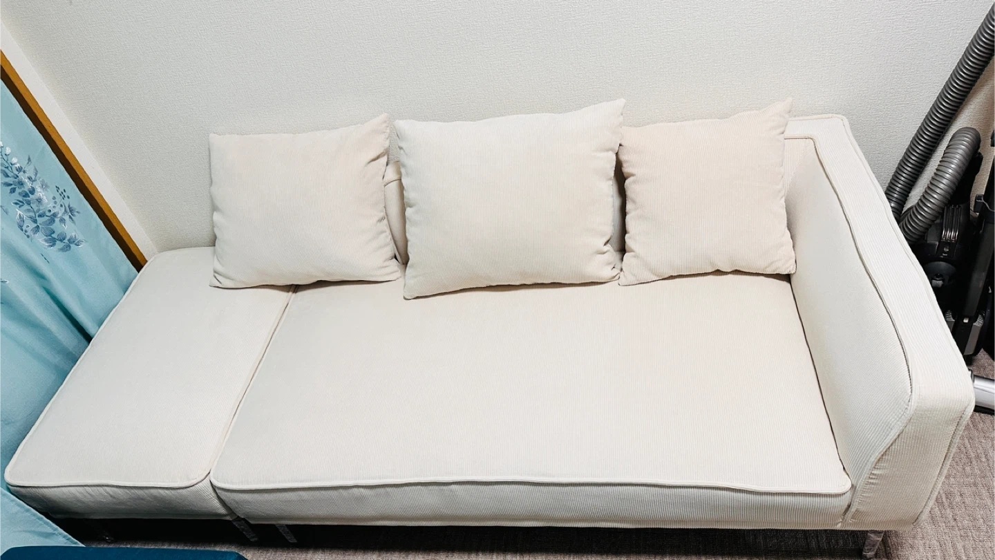 もっと大きいのが欲しくて他の購入致します (アイボリー) 上品な光沢が美しいコーデュロイ生地を使用した、人気の2人掛けソファです✨ ふっくらとした座面で底付き感がなく、長時間座っても快適。 奥行き61cmのゆったりサイズなので、映画鑑賞やリラックスタイムにもぴったり🎬 脚を外せば、雰囲気のあるローソファスタイルにもでき、お部屋の模様替えも簡単♪ どんなインテリアにも馴染むアイボリーカラーで、ナチュラルにもホテルライクにも◎ ⸻ Amazonで購入価格:33000円 【サイズ】 幅130cm × 奥行75cm × 高さ76cm(座面高39cm) 【ポイント】 ・座面奥行61cmで広々💺 ・ほどよい弾力で座り心地抜群 ・脚取り外しOKで2WAY仕様 ・高級感あるコーデュロイ生地 Amazonリンク商品 https://amzn.asia/d/5D37558