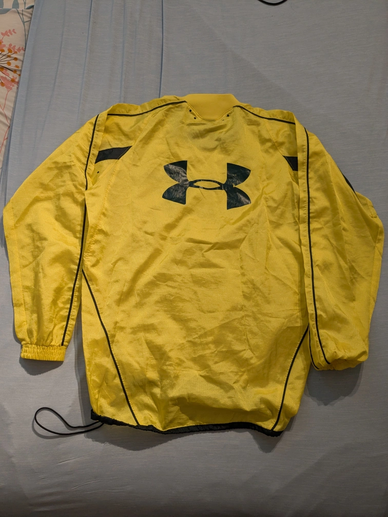 《処分 特価》 注意)バックプリントのマーク部の一部が剥げかけています。 (5枚目の写真を参照) ---------------------------------------------------------- 【高機能素材】 UNDER ARMOURのウィンドブレーカーは、軽量で耐久性のある素材を使用しており、風を防ぎつつ快適な着心地を提供します。 【スポーツに最適】 サッカーやフットサルなどのアクティブなスポーツに最適なデザインで、動きやすさを考慮したカッティングが特徴です。 【目を引くデザイン】 鮮やかなイエローのカラーと、ブランドロゴが際立つデザインで、トレーニングや試合中に目を引く存在感があります。 - ブランド: UNDER ARMOUR - 色: イエロー - サイズ: XL - スタイル: ウィンドブレーカー - 用途: スポーツウェア - 注意)※バックプリントのマークの一部が剥げています。 ご覧いただきありがとうございます。 尚、他サイトにも出品しておりますので、売り切れの際はご了承ください。 よろしくお願いいたします。 袖...長袖 性別...メンズ