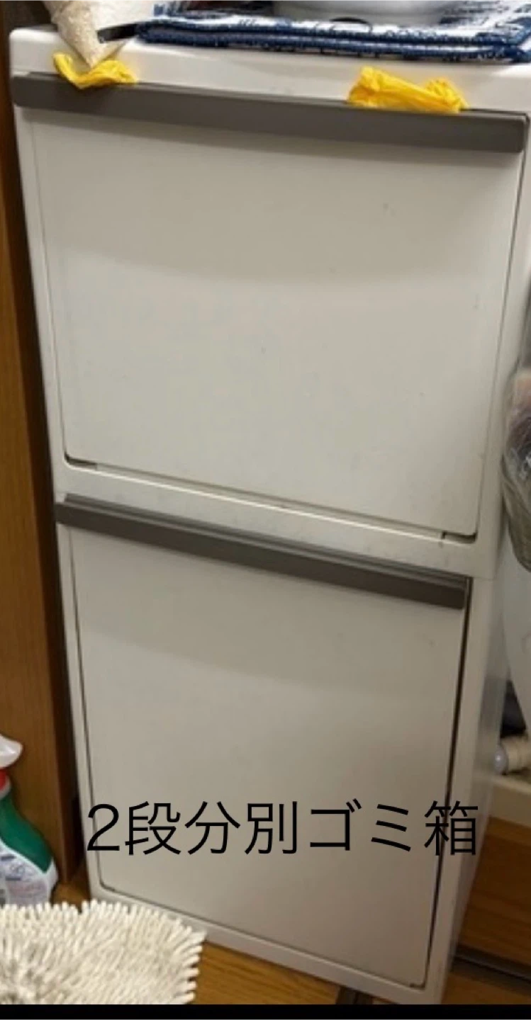 2段分別ゴミ箱 ・色:白 ・2段式 ・使用していた中古品のため使用感(使用に伴う細かい傷や擦れ)はあります 洗浄後アルコール除菌シートで拭いてあります ・上段左右1つづつフックが付いていて便利です 大きさは 縦25cm 横35cm 高さ82cm キャスターは付いていませんが、プラスチック製なので軽いです お渡しはセブンイレブン吉祥寺南町5丁目店前で 海外転勤引っ越し予定で日本の家に置いて出国するよりお使いいただける方にお譲りしたく出品しました 引っ越し準備の都合上・出国日が迫っている為、早く引き取りに来られる方を優先させていただきます