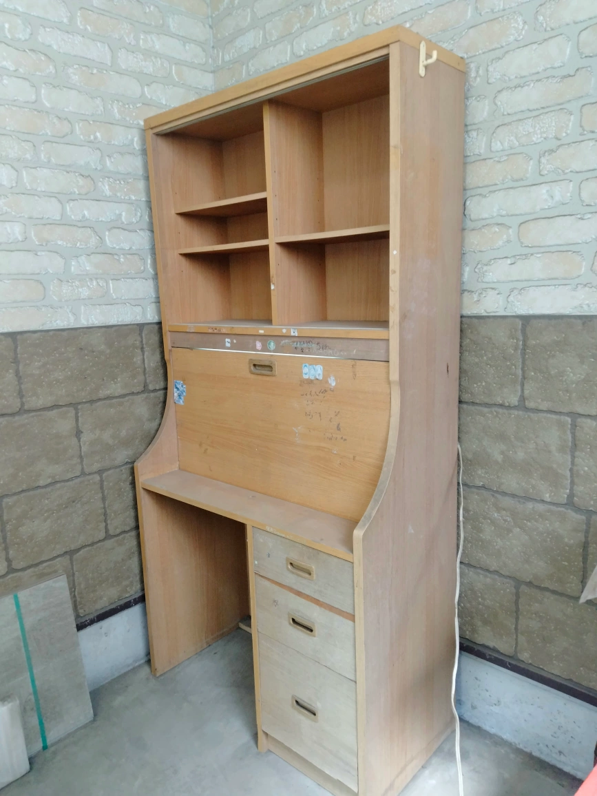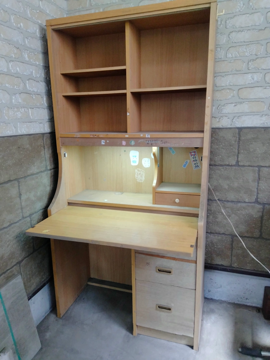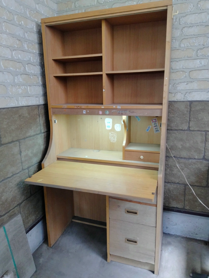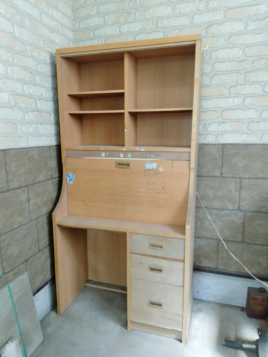 昭和レトロ アンティーク 木製収納ボックス 2引き出し ダークブラウン 鏡付き