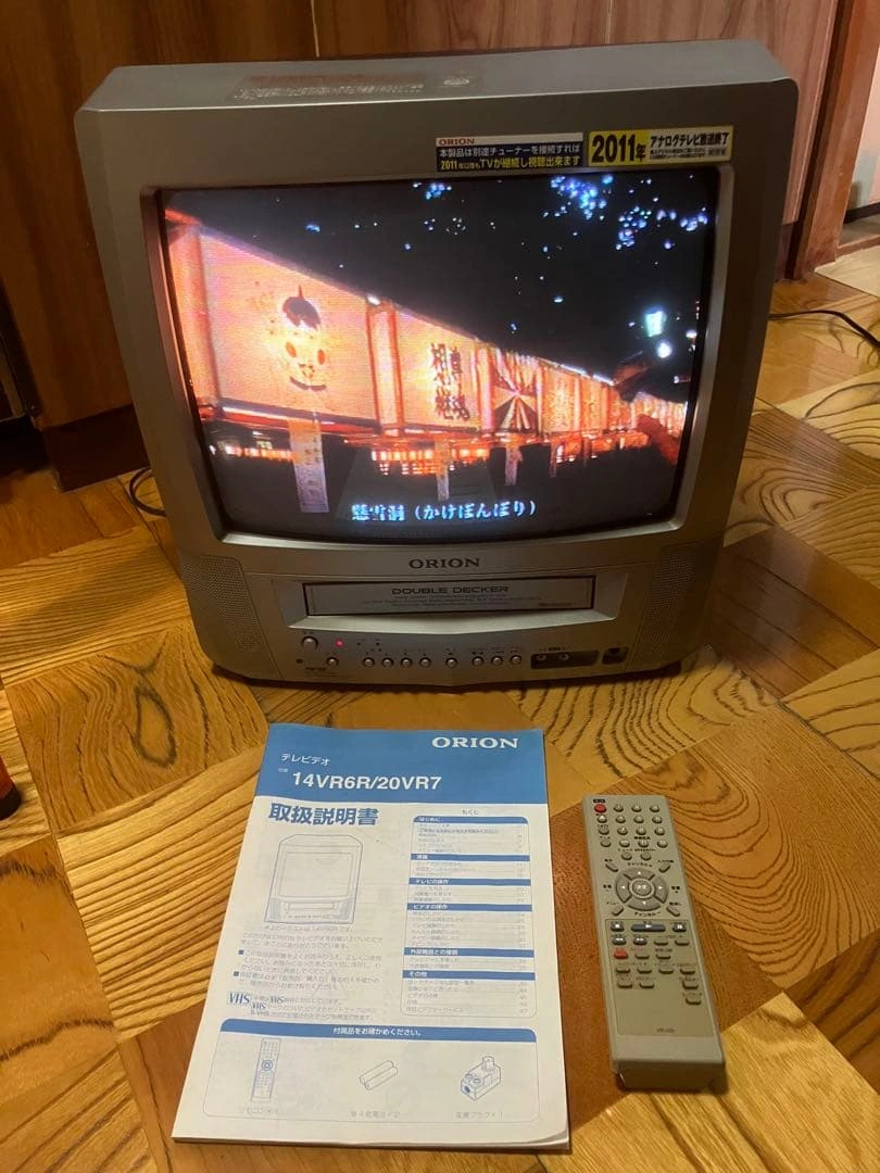 ORION オリオン ビデオ付14型カラーテレビ 14VR6R(VR-020) ブランド: ORION オリオン モデル: 14VR6R 本体 リモコン(新品電池付き) 取扱説明書 ※実家にしまってあった品です 使用形跡が僅かな美品です。 出品にあたり… ・一連のビデオ動作及び再生ができること確認済み (実家にあるビデオテープ使用にて) ・テレビが見れる事を確認 (実家にある地デジチューナー、アンテナケーブル使用にて) ご希望の方はお気軽にご連絡ください。