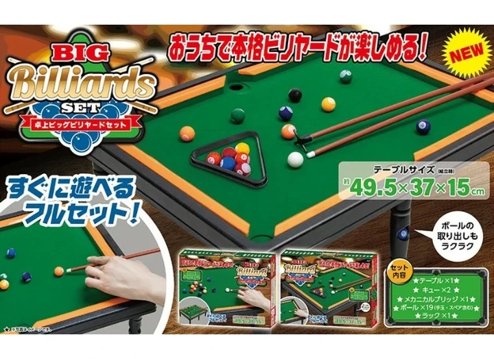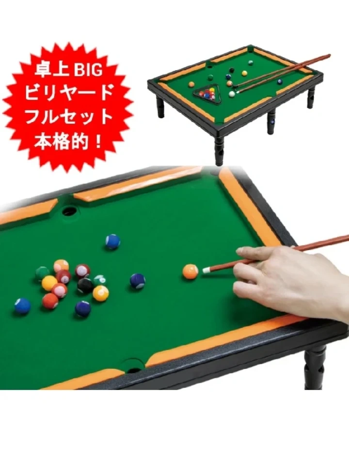 おうちで本格ビリヤードが楽しめる! 卓上BIGビリヤードセット すぐに遊べるフルセット! ボールの取り出しもラクラク テーブルサイズ(組立時) 約49.5✕37✕15cm 新品未使用。