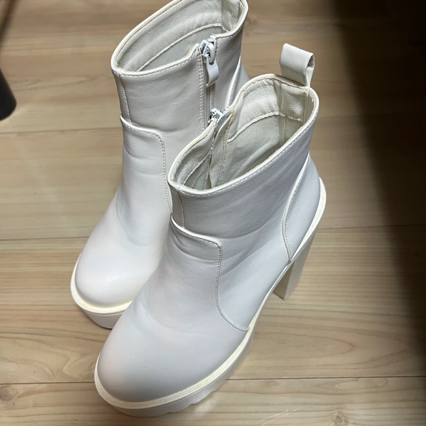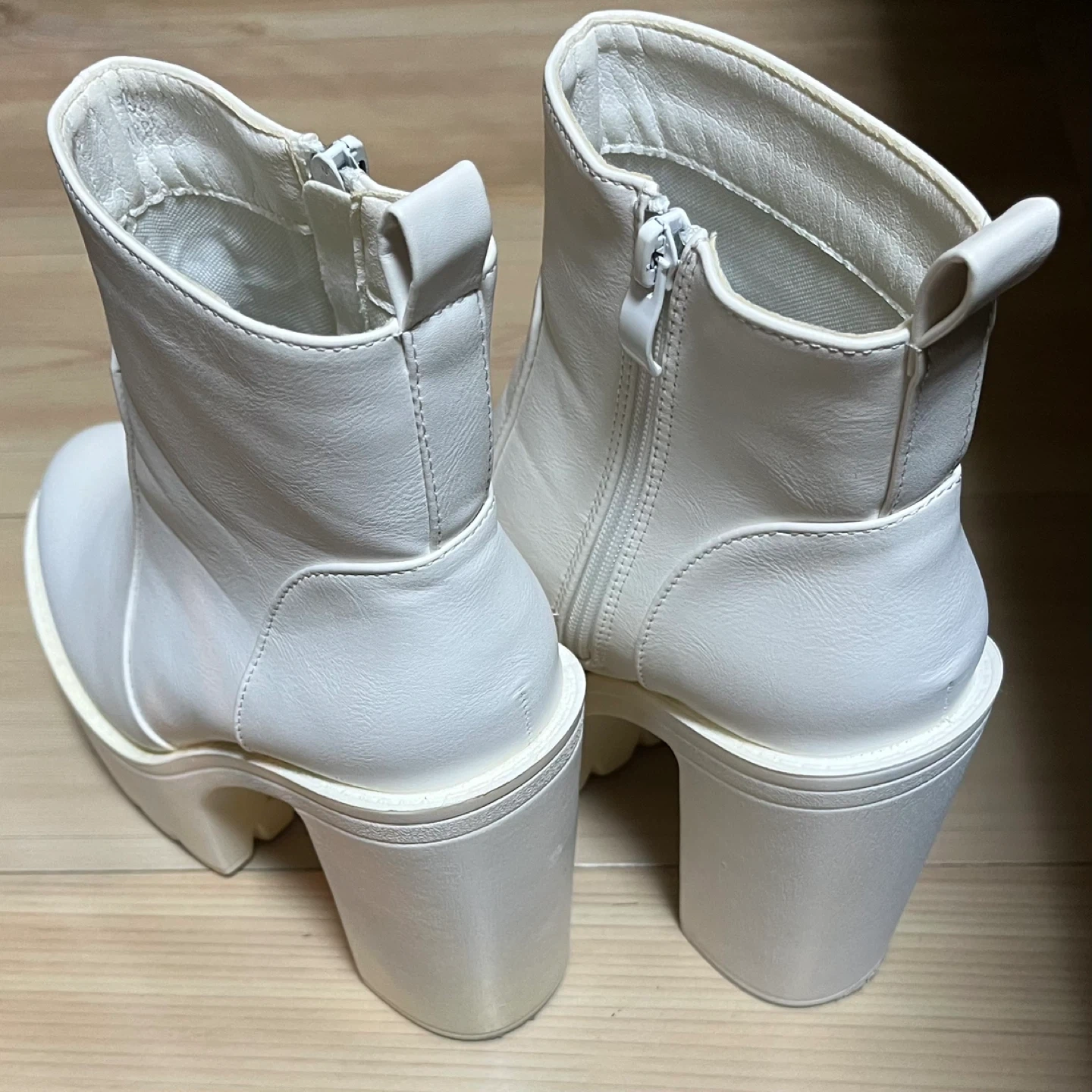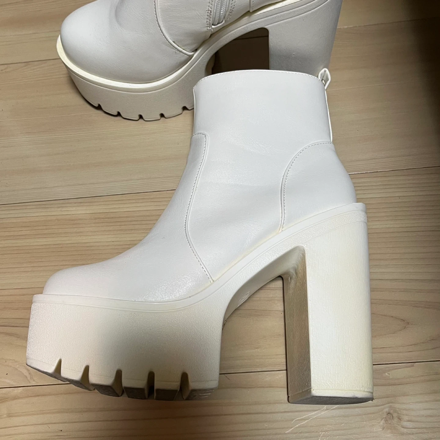 厚底ブーツです。 サイズが大きく合わなかったので出品です。(数回ほど履いてます) ・カラー:ホワイト ・サイズ:37 ・製造国:中国 中古品であることをご了承ください。 箱が無いため現物でのお渡しとなります。 受け渡し場所は最寄り大泉学園駅付近の自宅にて【非対面取引】となりますのでご了承ください。