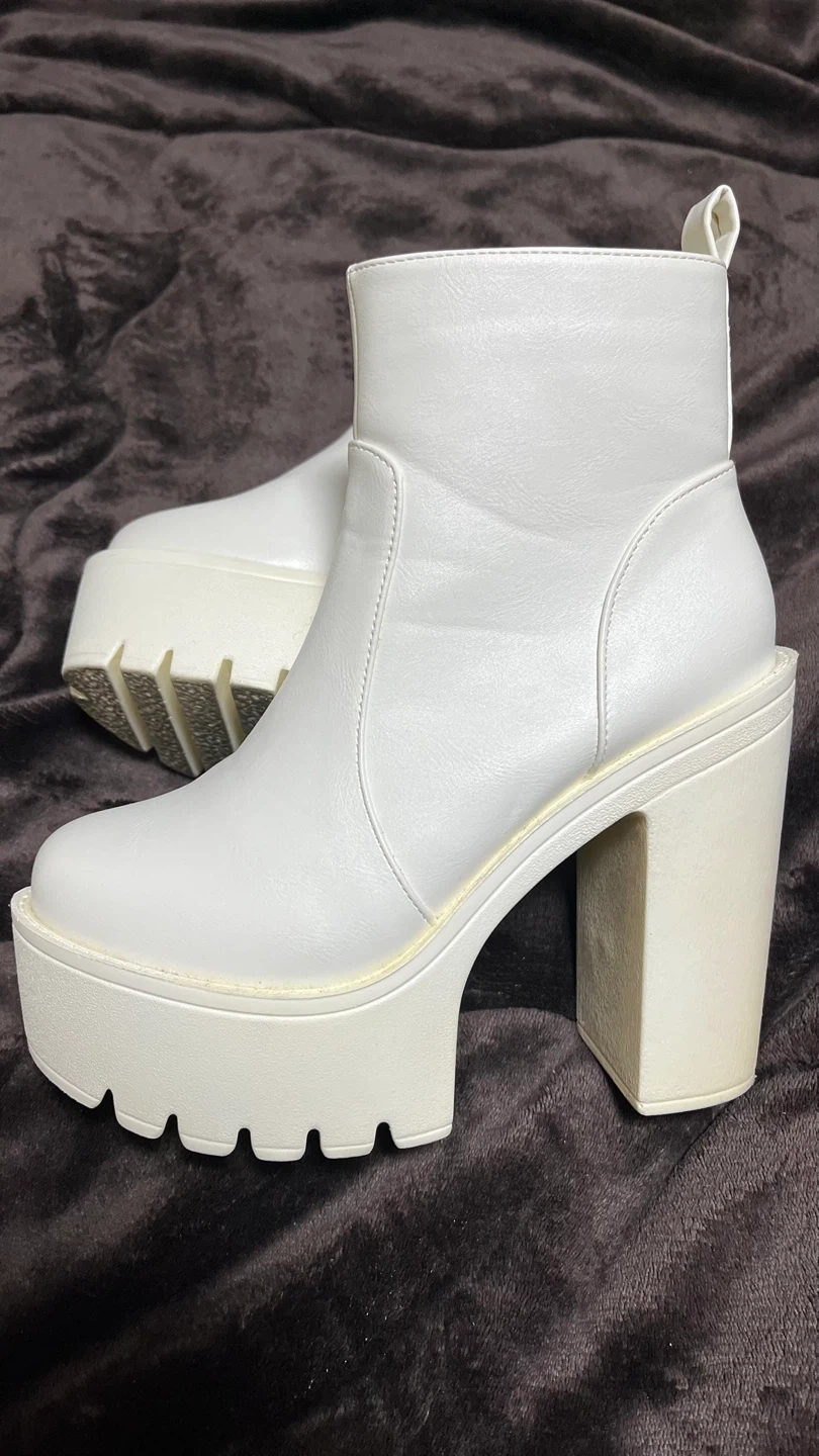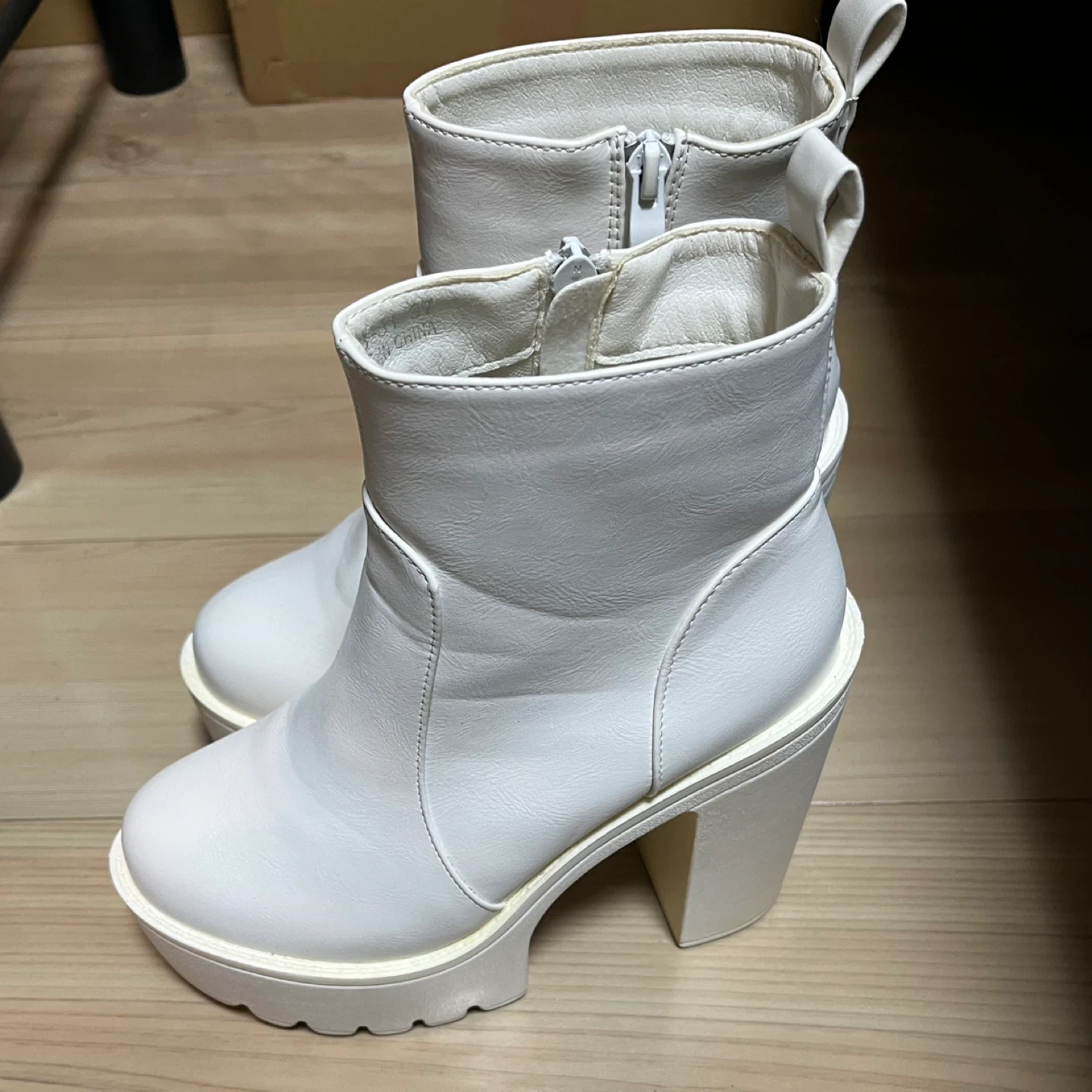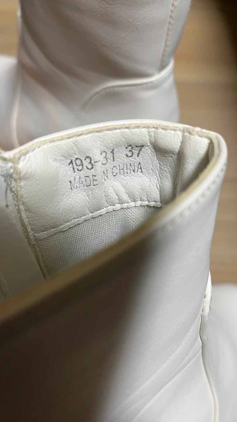 厚底ブーツです。 サイズが大きく合わなかったので出品です。(数回ほど履いてます) ・カラー:ホワイト ・サイズ:37 ・製造国:中国 中古品であることをご了承ください。 箱が無いため現物でのお渡しとなります。 受け渡し場所は最寄り大泉学園駅付近の自宅にて【非対面取引】となりますのでご了承ください。