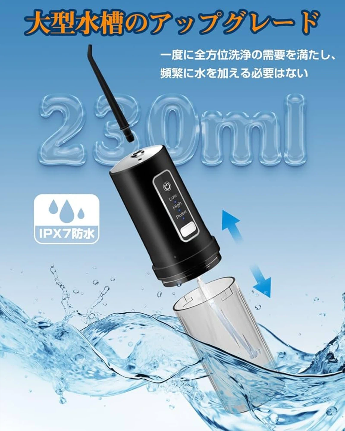 口腔洗浄器 ジェットウォッシャー コードレス 230ML水容量 IPX7防水