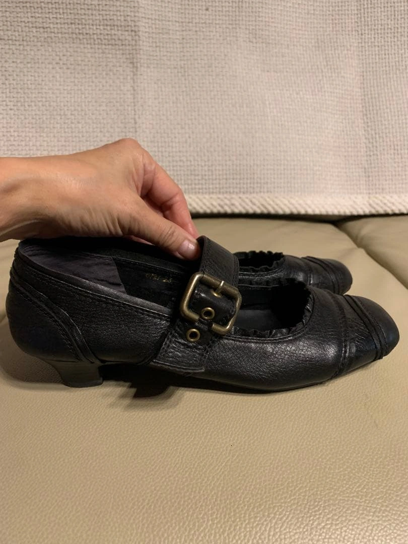 つま先にうっすらスレありますが、全体的に綺麗です。 ストラップ裏にはゴムが配置してあり、そのまま履けます。 ヒール高さ約3センチで安定感があります。 ご希望の方はお気軽にご連絡ください。