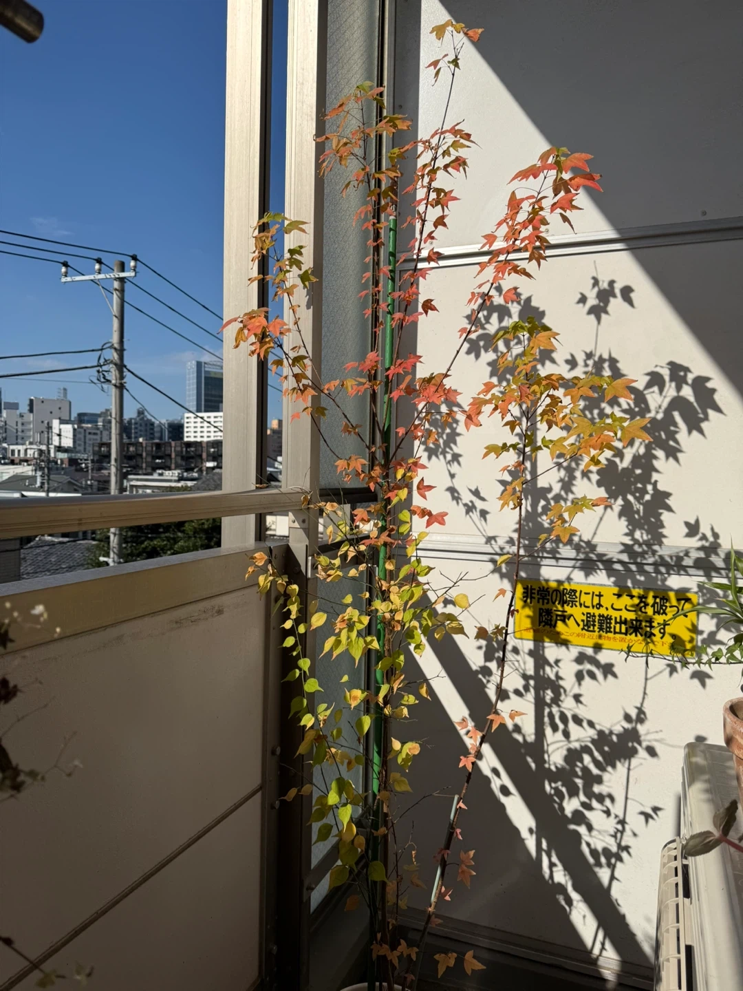 あたたかさ高さは180cmくらいありますが、手で充分持てる重さです。 そろそろ紅葉し始めました。