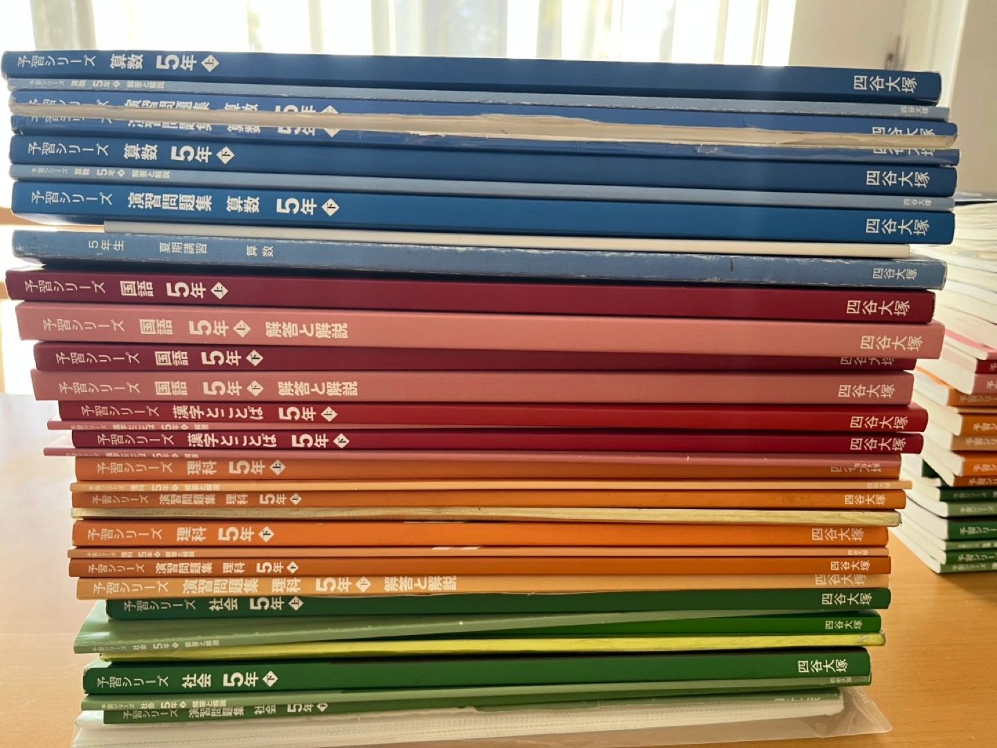 教育シリーズの算数5年生用参考書セット、ペンギンの表紙デザイン。 四谷大塚の予習シリーズ 5年 算国理社+算数夏期講習 全31冊×500円と送料2000円の計算です。 定価だと1冊1540〜1980円です。 算数以外は書き込みは割と少ないと思いますが、ゼロではありません。 図形への書き込みや正誤のマークなどが主で、 途中計算などはほとんど書き込んでいません。 ですが、使用済みということをご理解頂いた上でご検討ください。 算数の演習は問題と解答解説を切り離してあります。 名前は修正テープで消してあります。 送料がかなりかかるので、それを含めた価格にしています。 4年、6年も出品しています。 ご覧いただきありがとうございます。