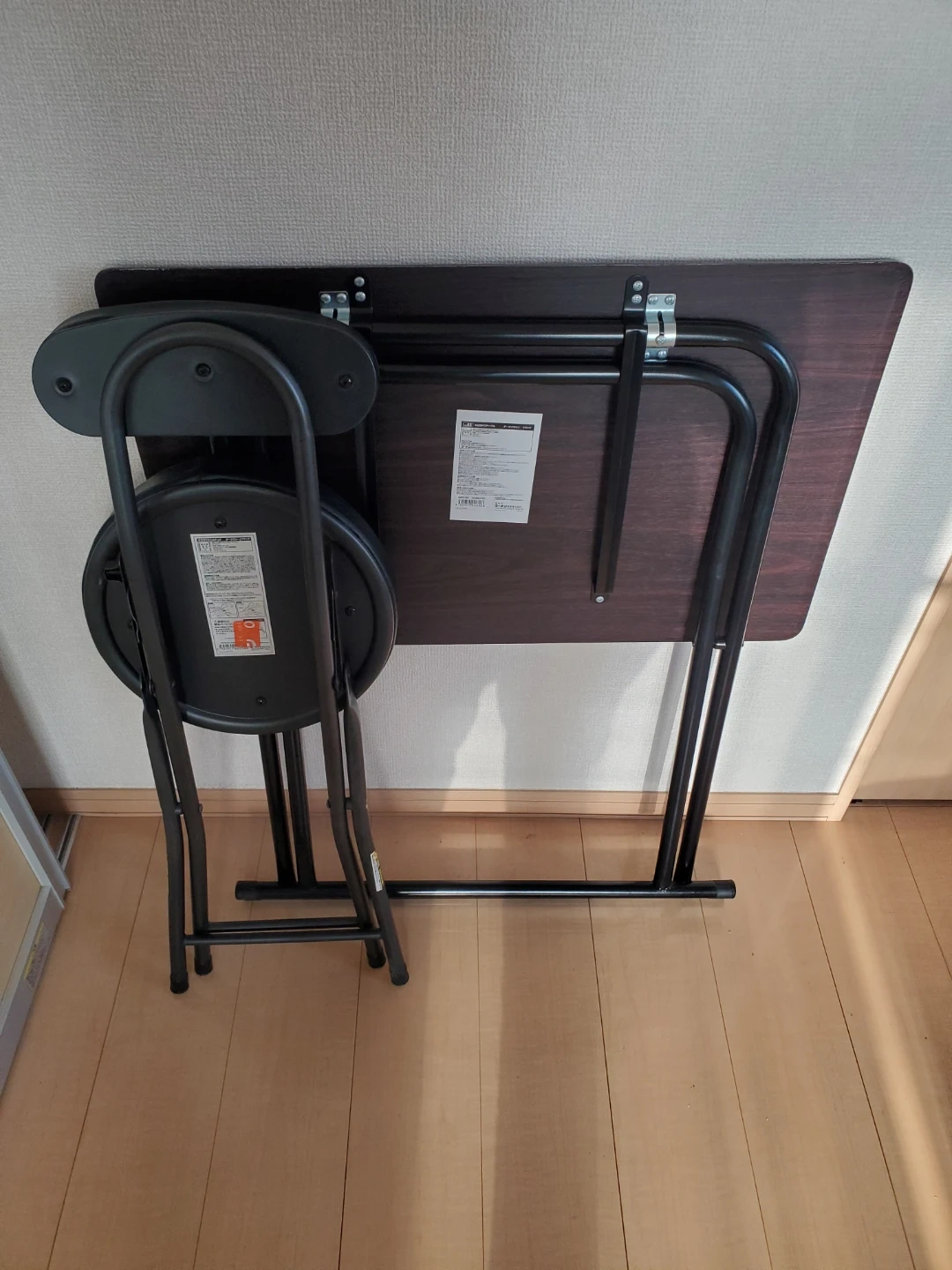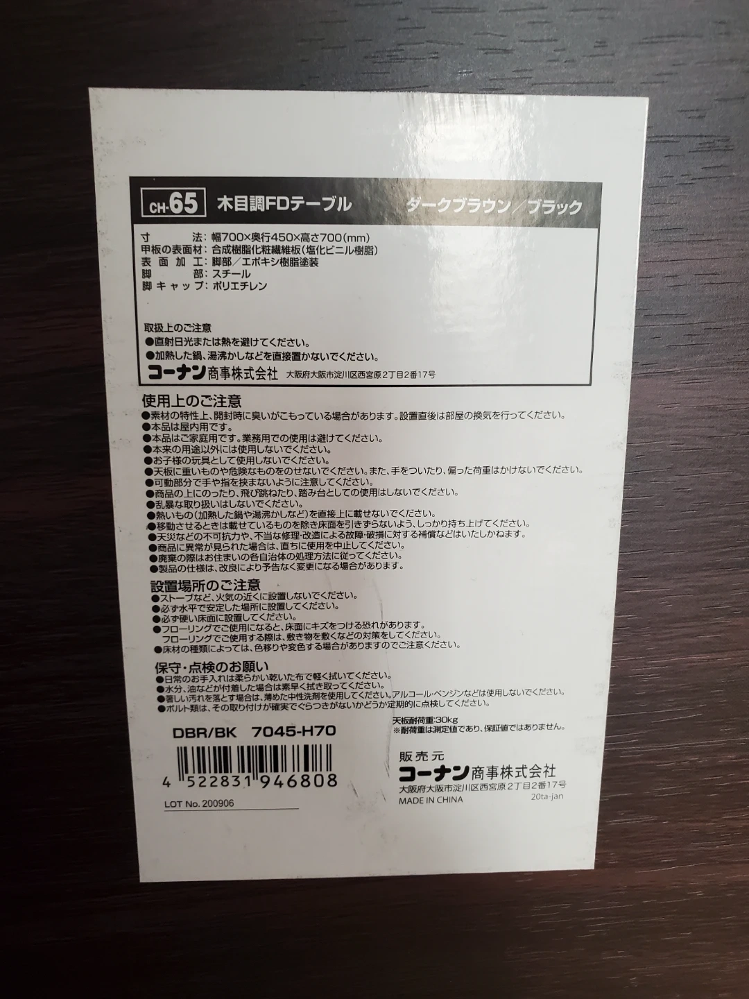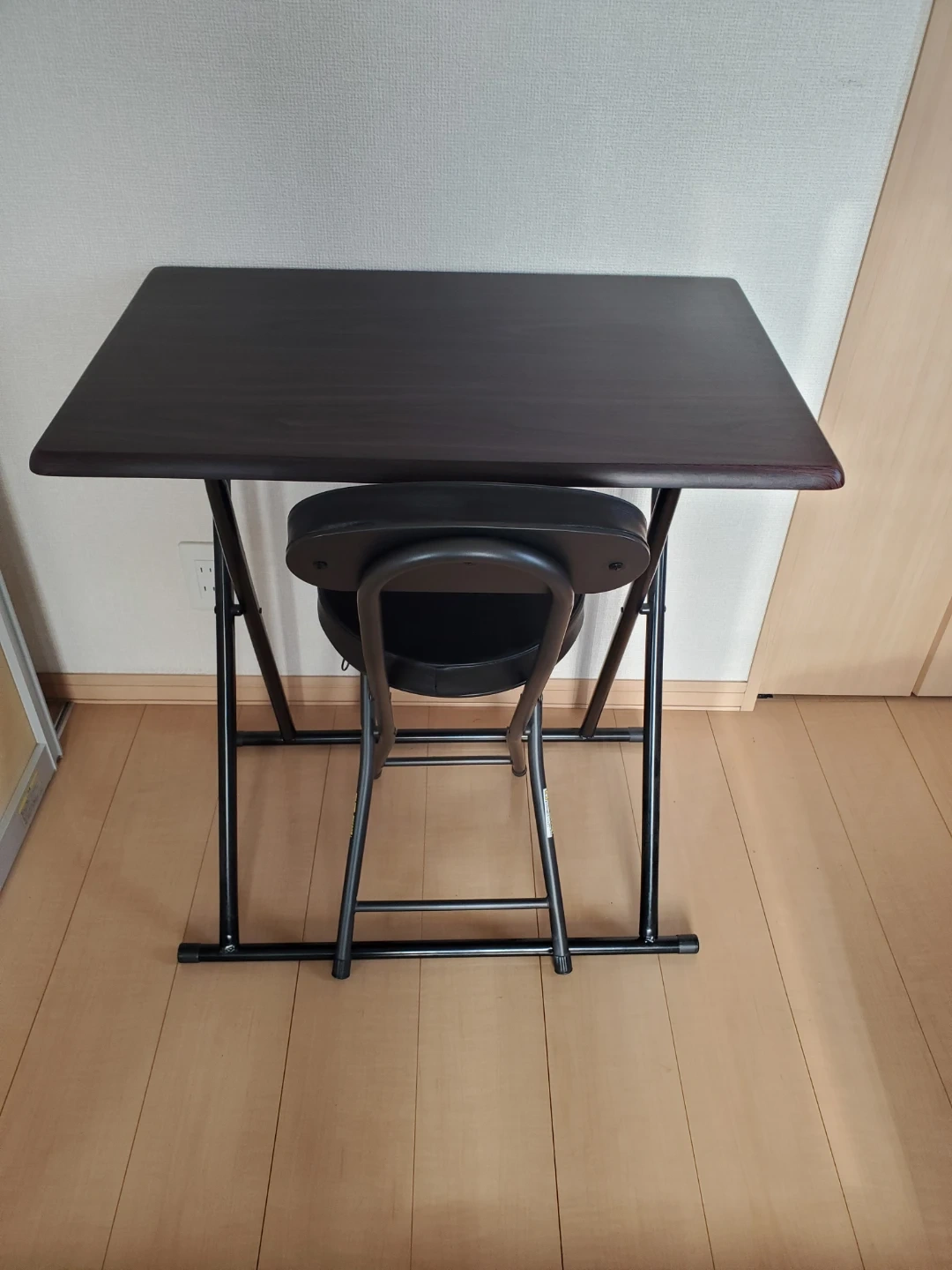 コーナンの木目調折り畳みテーブル イスをセットでご紹介です。 同時に購入していますが、セット商品ではありません。 【情報】 ブランド:コーナン 商品:木目調折り畳みテーブルチェアセット 型番:CH-65 木目調FDテーブル 色:ダークブラウン/ブラック サイズ:テーブル 幅700x奥行450x高さ700mm、チェア 幅310x奥行455x高さ745mm 【状態】 天板の角に小さな傷あり 使用感は少ない 中古品であることをご了承ください。
