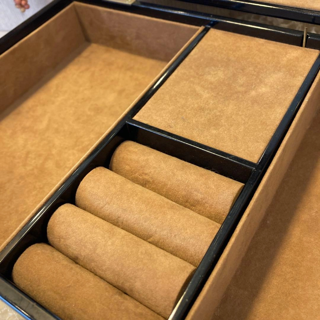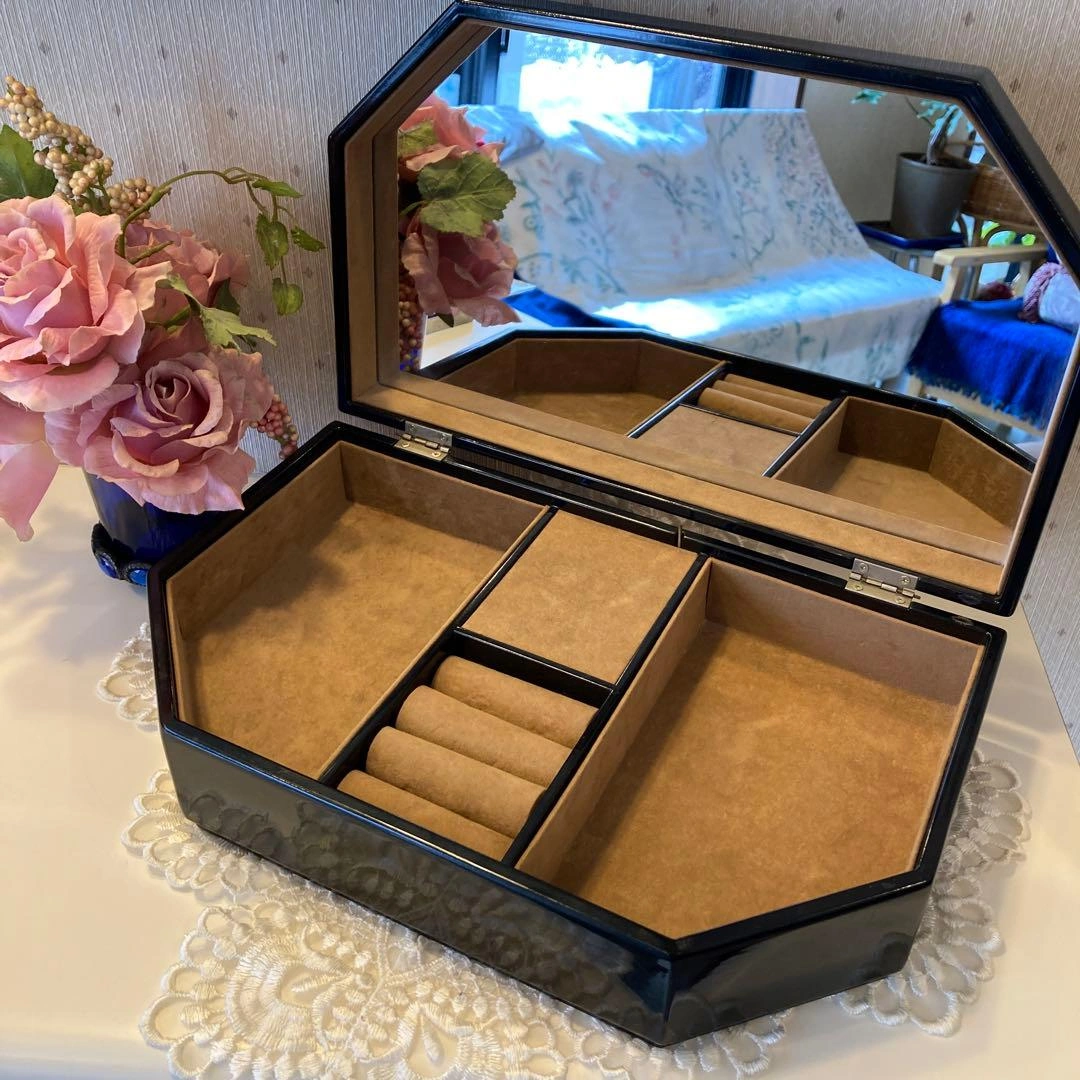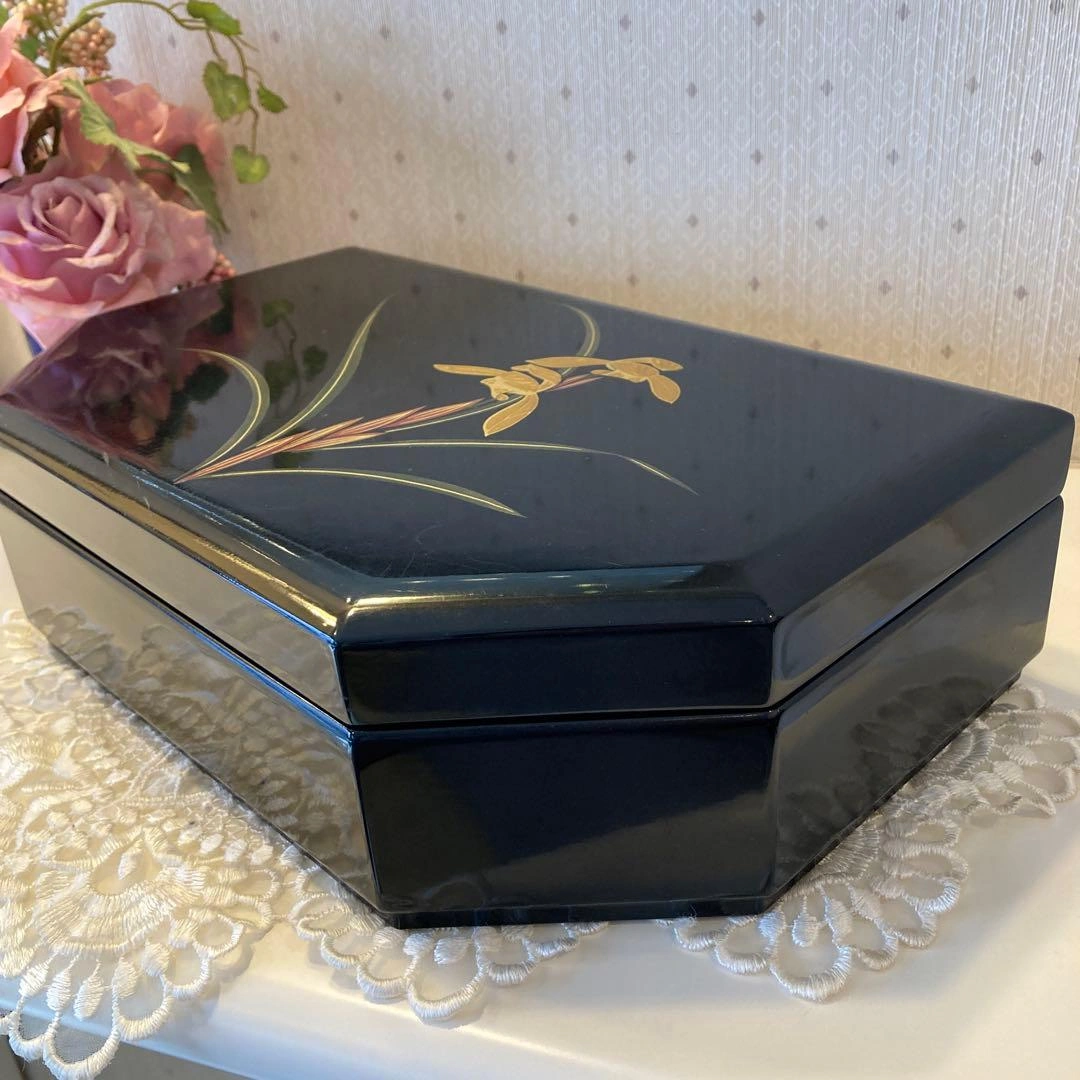 黒塗り オルゴール付き宝石箱です♪ 横29縦17.5高さ8.5センチ 裏側のネジを回すと優しい音色で音楽が流れます。 外国の方へ喜ばれると思います。 目立つ傷はありませんが小傷はあります。 写真をご覧くださいませ。 ご希望の方はお気軽にご連絡ください。