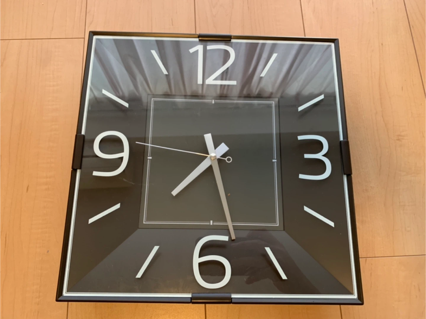 スクエア型の壁掛け時計です ・色:ブラック ・サイズ:約30cm x 30cm ・単三電池1本使用(電池は付属しません) ・目立つキズなし 中古品であることご了承ください ご覧いただきありがとうございます。5個以上まとめてご購入いただける方はさらにお値引き致します。 是非ご検討宜しくお願い致します。