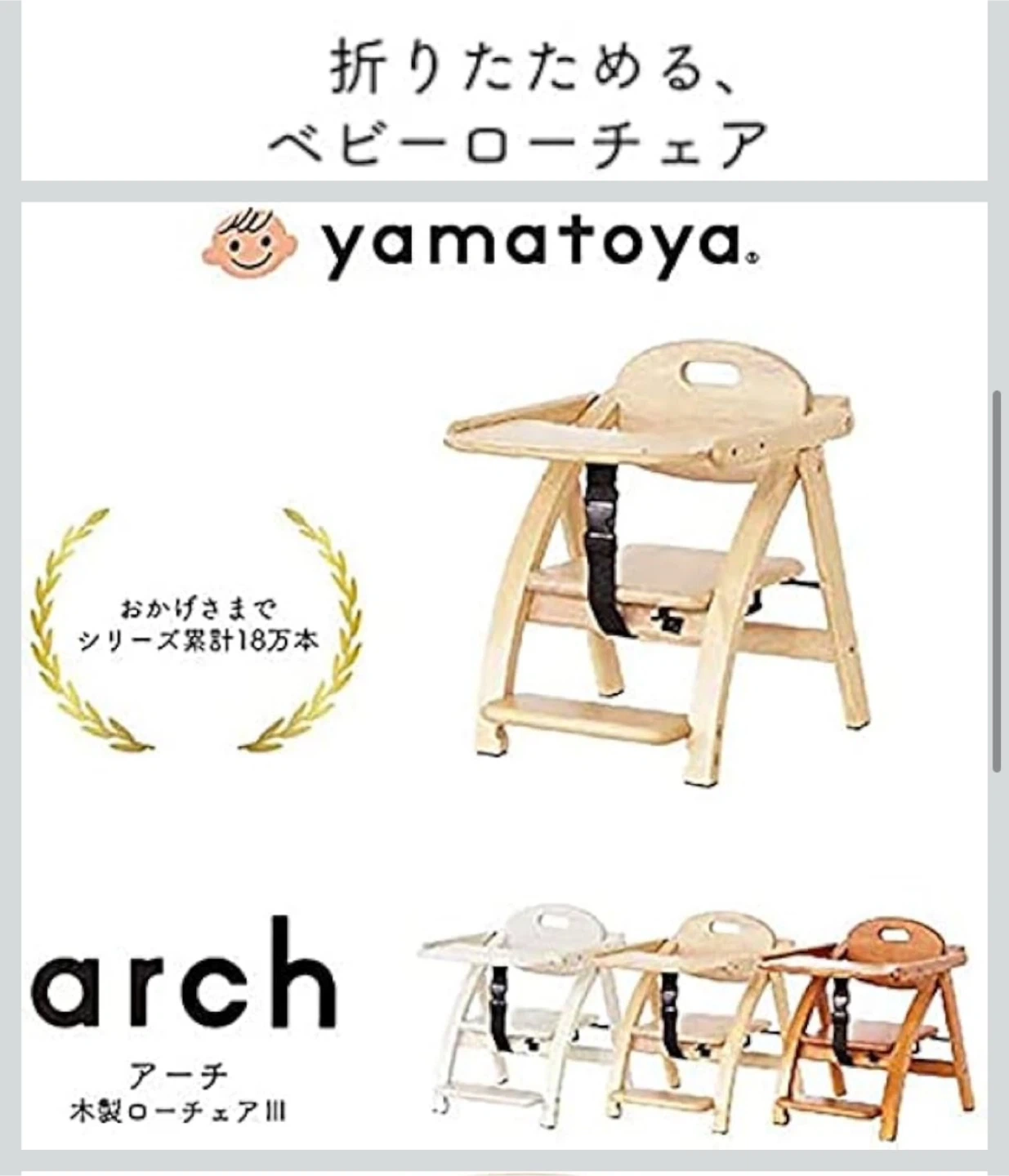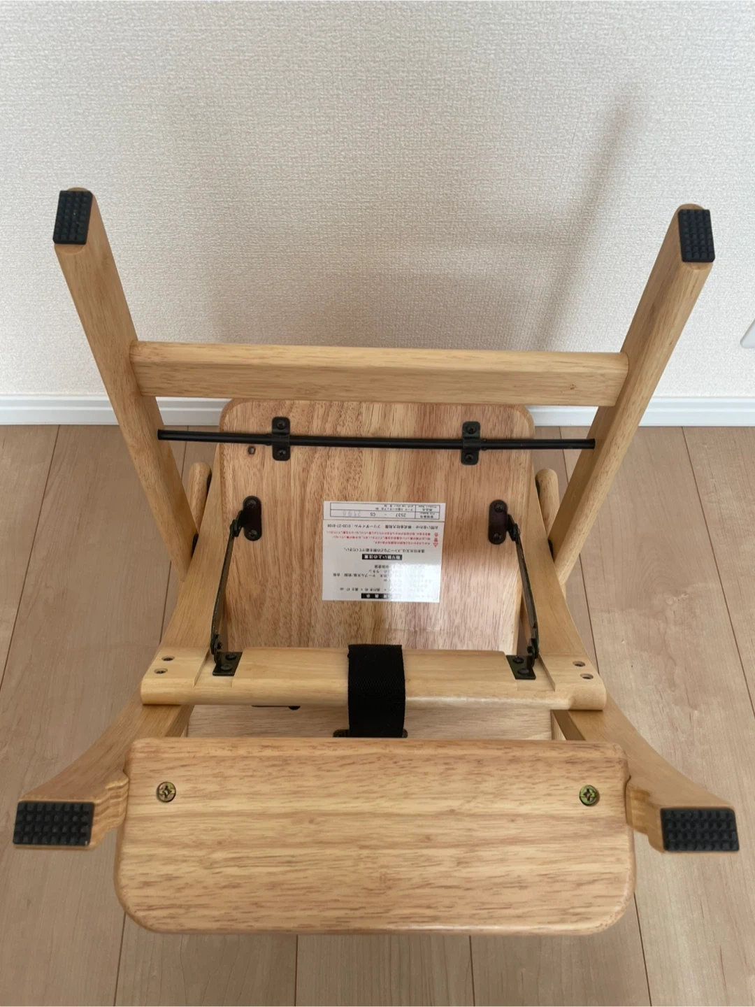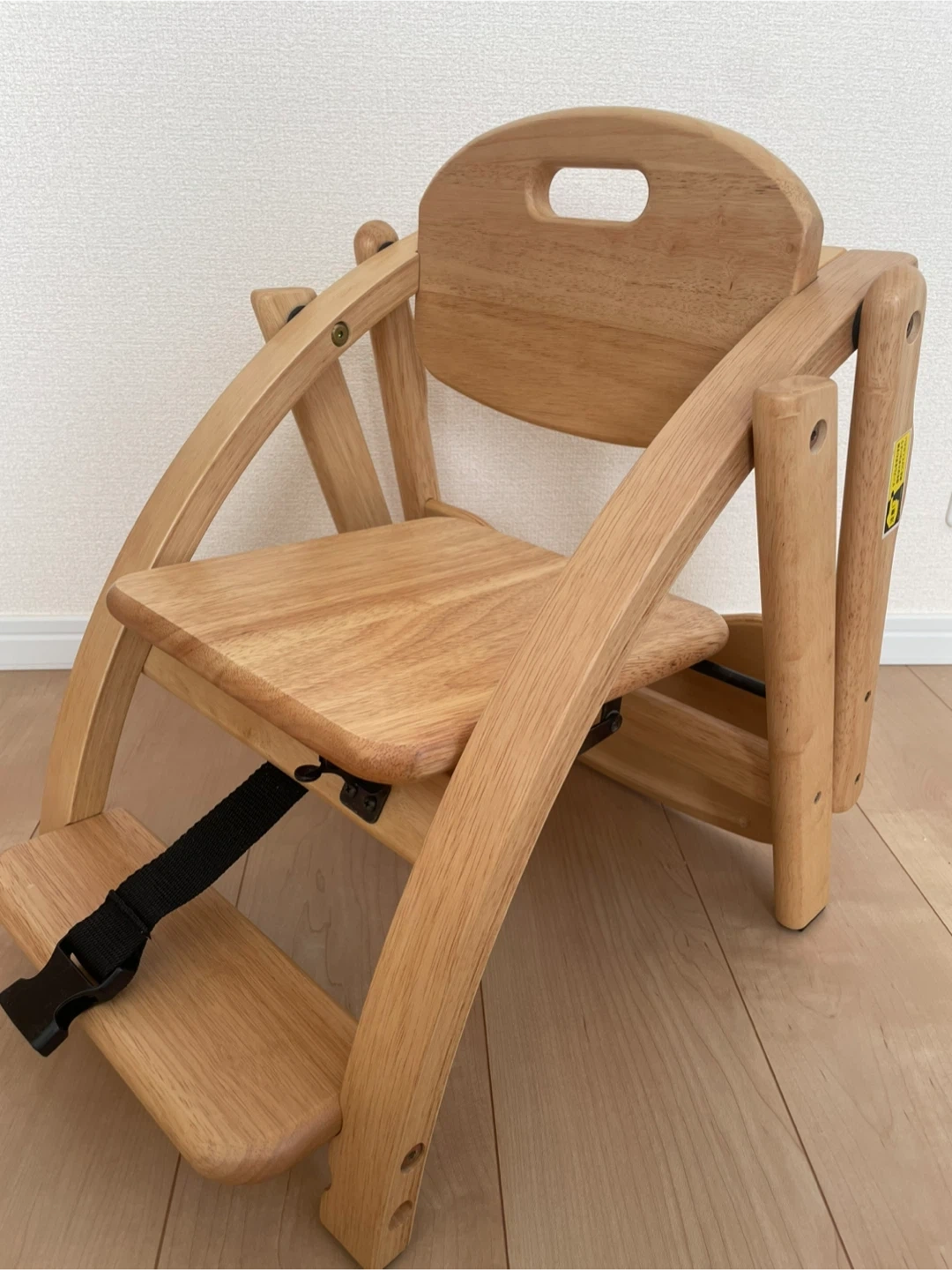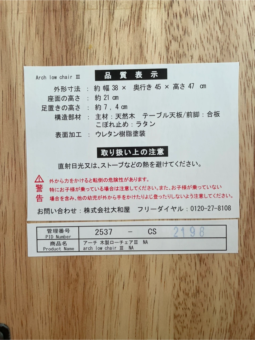 木製のローチェアです。 ダイニングテーブル購入に伴い、ハイチェアに移行してしまったので、ほとんど使用していません。 脚のクッション材も、きれいな状態です。 【情報】 商品名:arch low chair Ⅲ NA ブランド:株式会社大和屋 定価:9,680円 中古品であることをご了承ください。