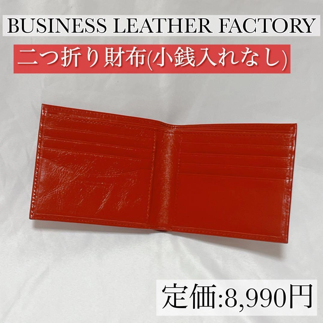 あたたかさBUSINESS LEATHER FACTORY ビジネスレザーファクトリー 二つ折り財布(小銭入れなし)です。 【参考定価】 8,990円 【カラー】 レッド ※ モニターや光の加減によって、色味が異なって見える場合があります。 【商品詳細】 素材:牛本革、シャンタン(裏地) サイズ:高さ9.7㎝×幅11cm×厚み1cm 重さ:約71g 機能:札入れ×2、カードポケット×8、フリーポケット×2 【商品特徴】 ・手のひらに収まるコンパクトサイズ ・お札を種類別に収納できる ・豊富な カードポケット数 【生産地】 バングラデシュの自社工場で生産しています。 【注意事項】 しわや小さな傷、ほくろ等、革の表情に個体差があります。天然素材ならではの個性としてお楽しみください。 本革の自然な風合いを生かすため、最小限の加工で仕上げています。長時間汗や雨に触れさせたり、強くこすったりすると色移りすることがあります。 【メンテナンス】 革専用のクリーナー、クリーム類をご使用ください。(アルコール類は利用できません。) ご希望の方はお気軽にご連絡ください。