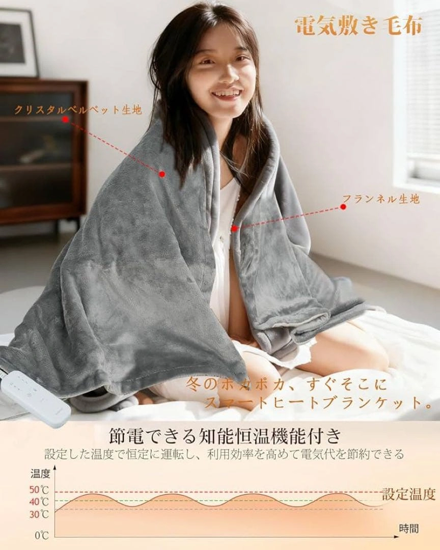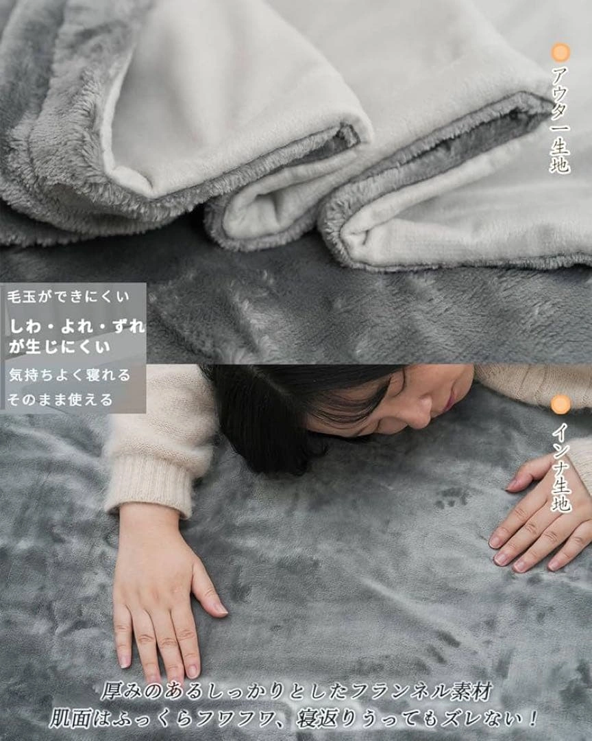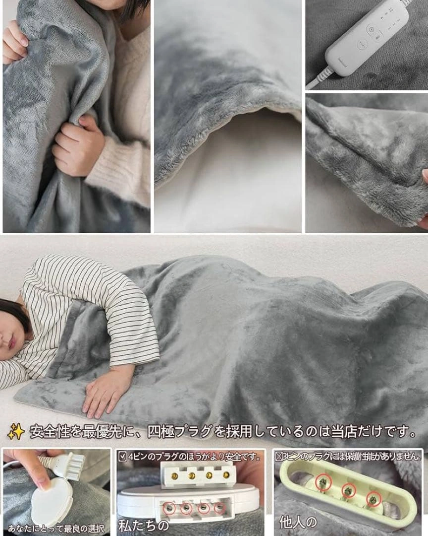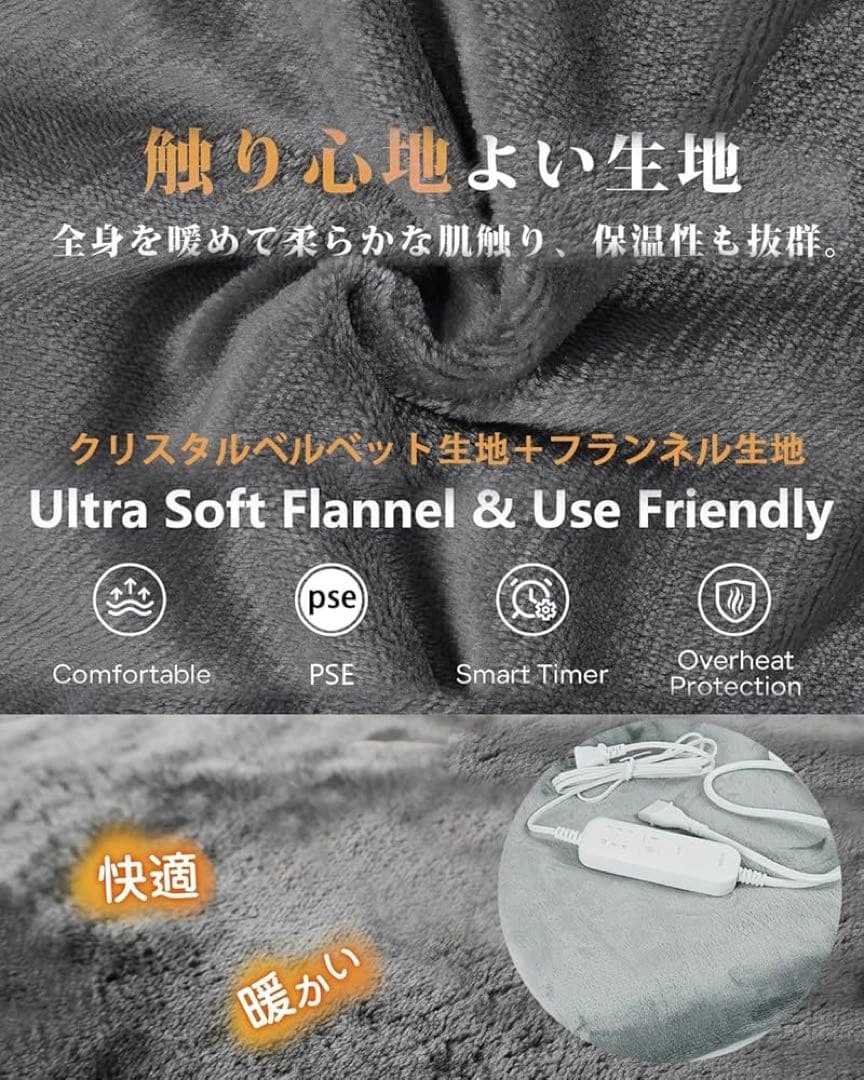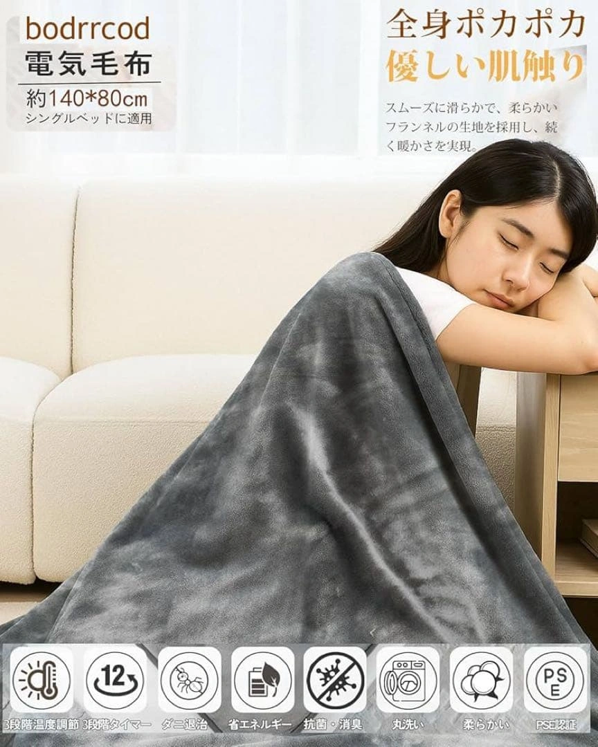 未使用品です(検品のため開封済み)。 サイズ:140×80cm カラー:グレー 材質:フランネル 敷布団としても掛け布団としても使える電気毛布です。リビングのソファやキャンプにも。 高性能コントローラーで、電源オンから約30秒で暖かさを実感できます。足元を重点的に温める配線設計。 強・中・弱の3段階温度調節、4/8/12時間のタイマー設定が可能です。無操作でも8時間で自動OFF。 表面はふわふわのフランネル、裏面は高品質エコ素材。丸洗いOKで、ダニ対策にもなります。 ご希望の方はお気軽にご連絡ください。