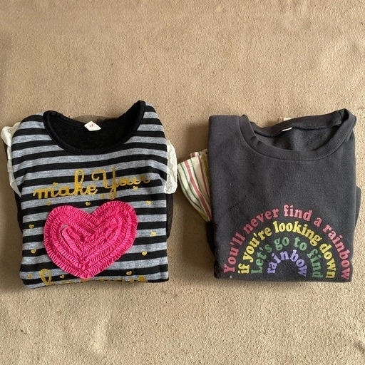 内側が暖かい素材です。 どちらも全体的に多少の毛玉があります。 1着150円でバラ売り可能です。 2着まとめて200円です。 他にも子供服やおもちゃの出品あり 自宅保管にご理解のある方のみお願いいたしますm(__)m ご希望の方はお気軽にご連絡ください。