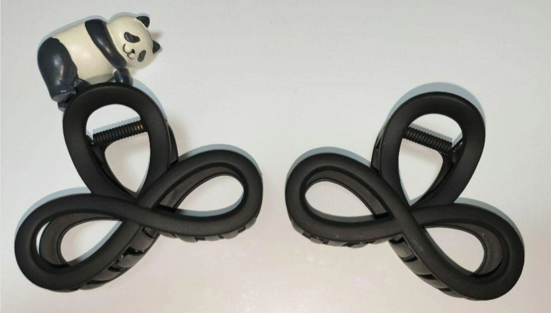 【ユニークなデザイン】 このヘアアクセサリーはスタイリッシュで個性的な印象を与えます。 【高品質な素材】 プラスチック製で軽量かつ耐久性があり、長時間の使用にも適しています。 【便利なサイズ】 縦約6cm.横8cm.持ち手の幅縦約5cm.横約3cmのサイズで、さまざまなヘアスタイルにフィットします。 - 色: 黒 - 縦のサイズ: 約6cm - 横のサイズ: 約8cm - 持ち手の幅: 縦約5cm.横約3cm (写真④.⑤をご参考にして下さい) - 使用回数: 0回 - 素材: プラスチック ご覧いただきありがとうございます。 写真にうつっているパンダは販売品ではありません。