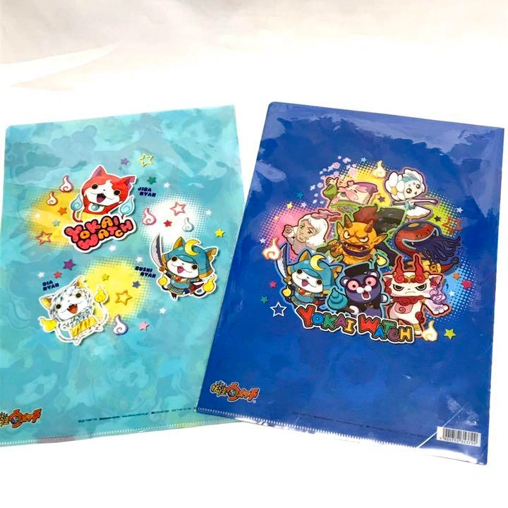 妖怪ウォッチのクリアファイルを2枚組でお届けします。 お子さんのプリントを挟んだり、下敷きがわりにもいかがでしょうか。 サイズはA4です。 ご希望の方はお気軽にご連絡ください。