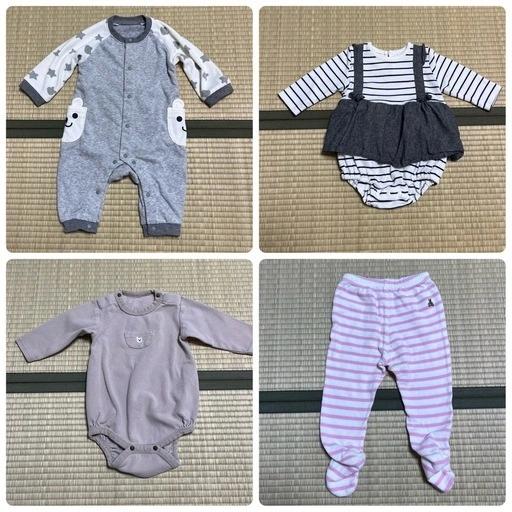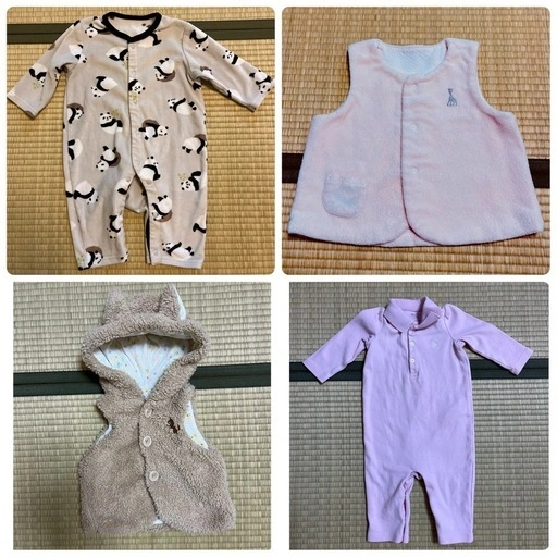 ロンパース5枚、長ズボン1枚、ベスト2枚のまとめ売りです。 シロクマのポケット付きグレーのロンパース 60〜70 目立った傷汚れは見当たりませんが、全体的に毛玉があり使用感がございます。 ルルアミの足なしロンパース 60〜70 目立った傷汚れは見当たりませんが、多少の使用感がございます。 アカチャンホンポ 薄茶のくま付き足なしロンパース 70 目立った傷汚れは見当たりませんが、多少の使用感がございます。 ベビーギャップ くま付きピンクのボーダーズボン 70 目立った傷汚れは見当たりませんが多少の使用感がございます。 パンダのロンパース 60〜70 目立った傷や汚れは見当たりません。 素材的にも着用感があまりなく比較的綺麗だと思います。 ラルフローレン ピンクの襟付きカバーオール 6M サイズ表記薄れていますが6Mです。 股スナップ 目立った傷や汚れはないように思います。 アフタヌーンティー オオカミのフード付きベスト 70 目立った傷や汚れはないように思います。 キリンのソフィー ベビーベスト 70〜90 サイズタグはありませんが70〜90サイズです。 目立った傷や汚れはございませんが細かな毛玉はございます。 素人検品のため見落とし等ご容赦くださいませ。 中古品のため神経質な方はお控えください。